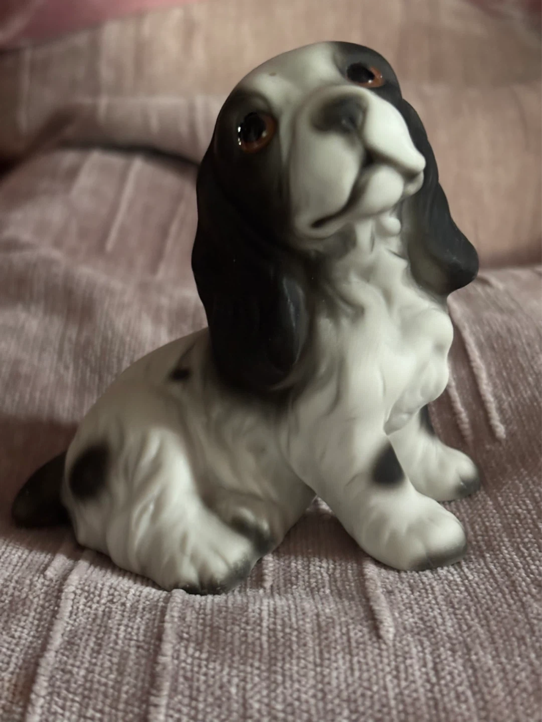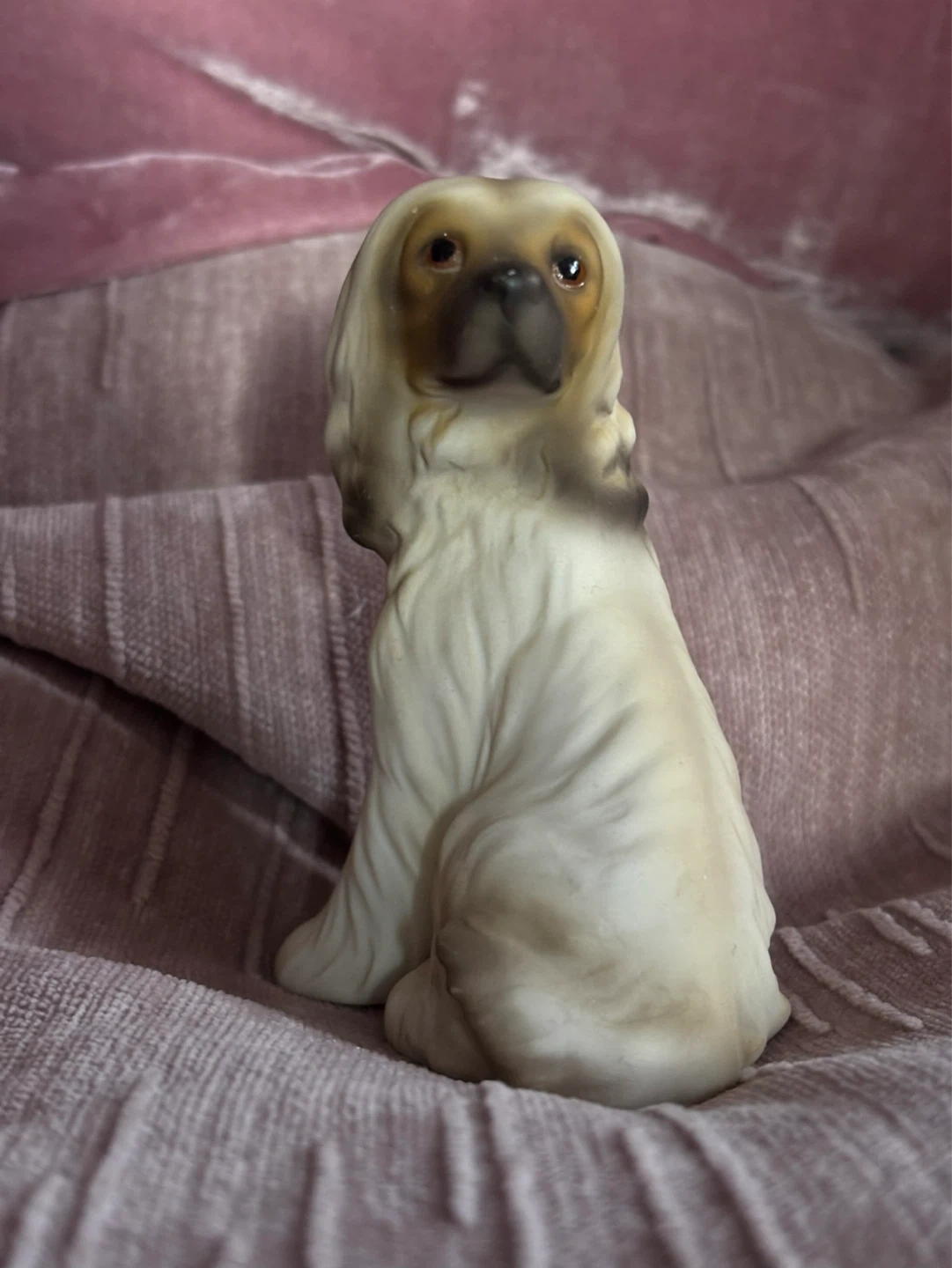 These are charming ceramic dog figurines made in Japan. They have a glazed finish with detailed sculpting. A lovely decorative piece for any dog lover! 4 inches tall
