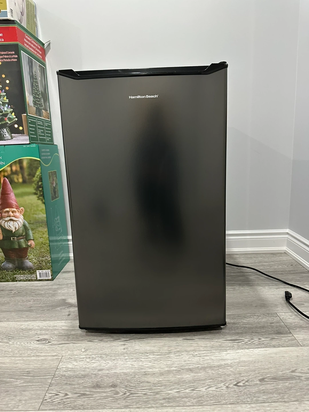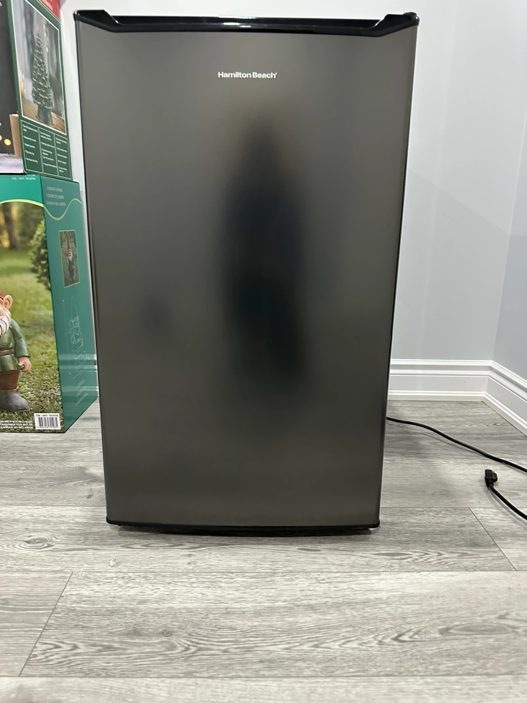 Completely brand new. 4.4 CU version. This model is the bigger fridge. Sold out everywhere. Buyer must pick up!