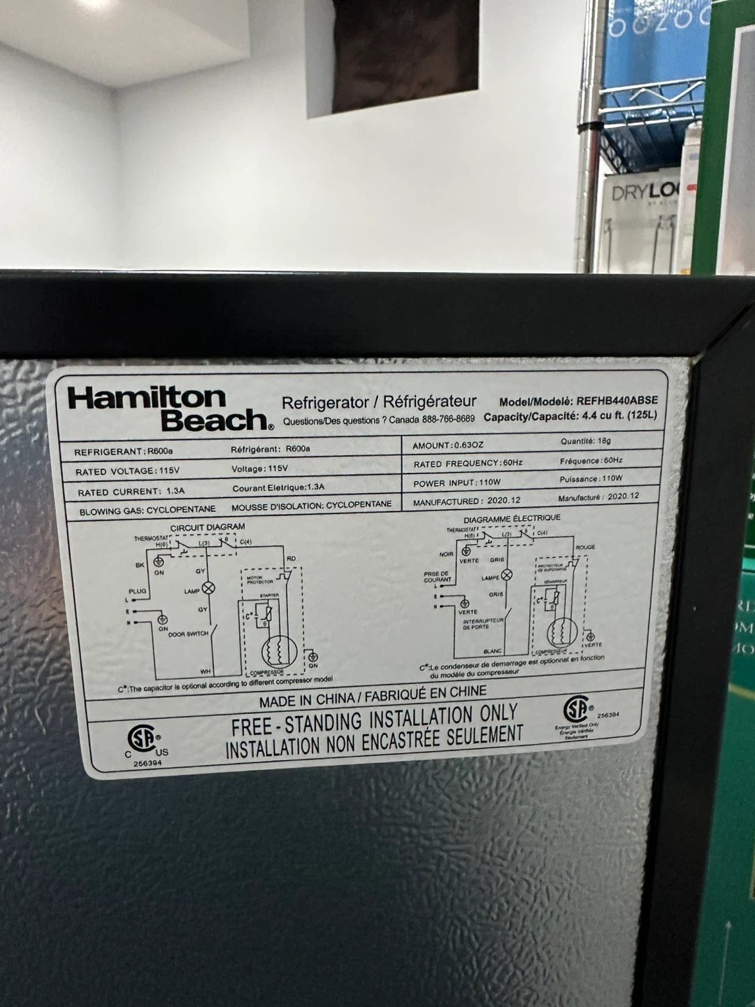 Hamilton Beach 4.4 cu.ft. Black Stainless Fridge