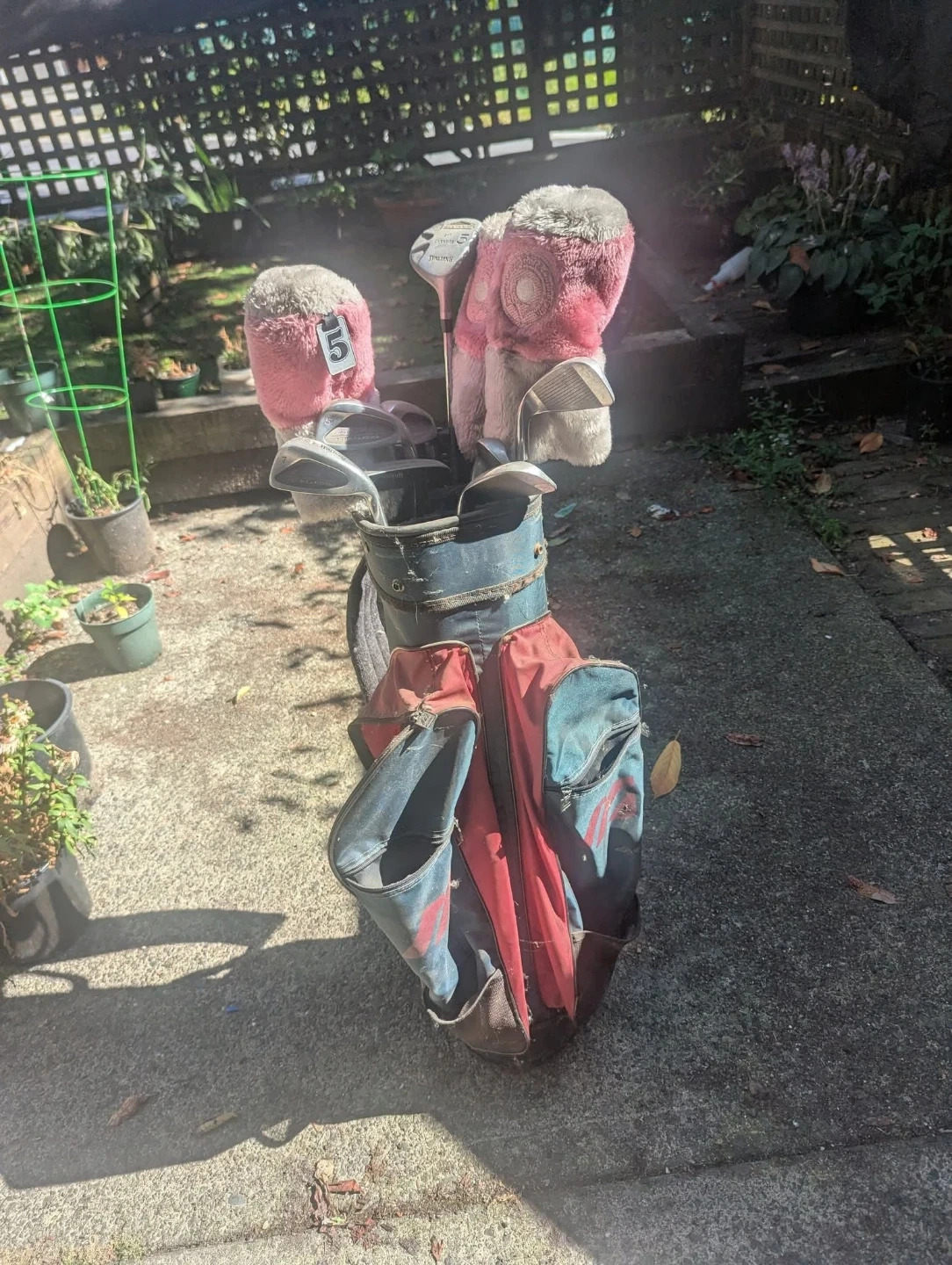 A set of golf clubs.