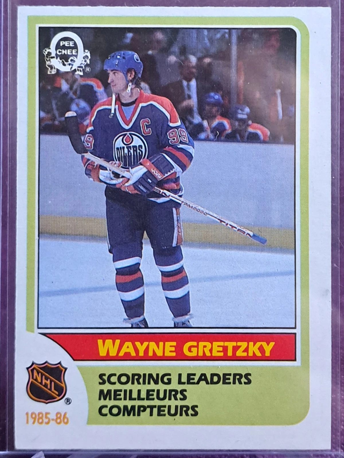 Ungraded - Near Mint or Better. Standard size 1986-87 O-Pee-Chee hockey card featuring Wayne Gretzky, Card #260, the scoring leader. Original O-Pee-Chee card from Canada.