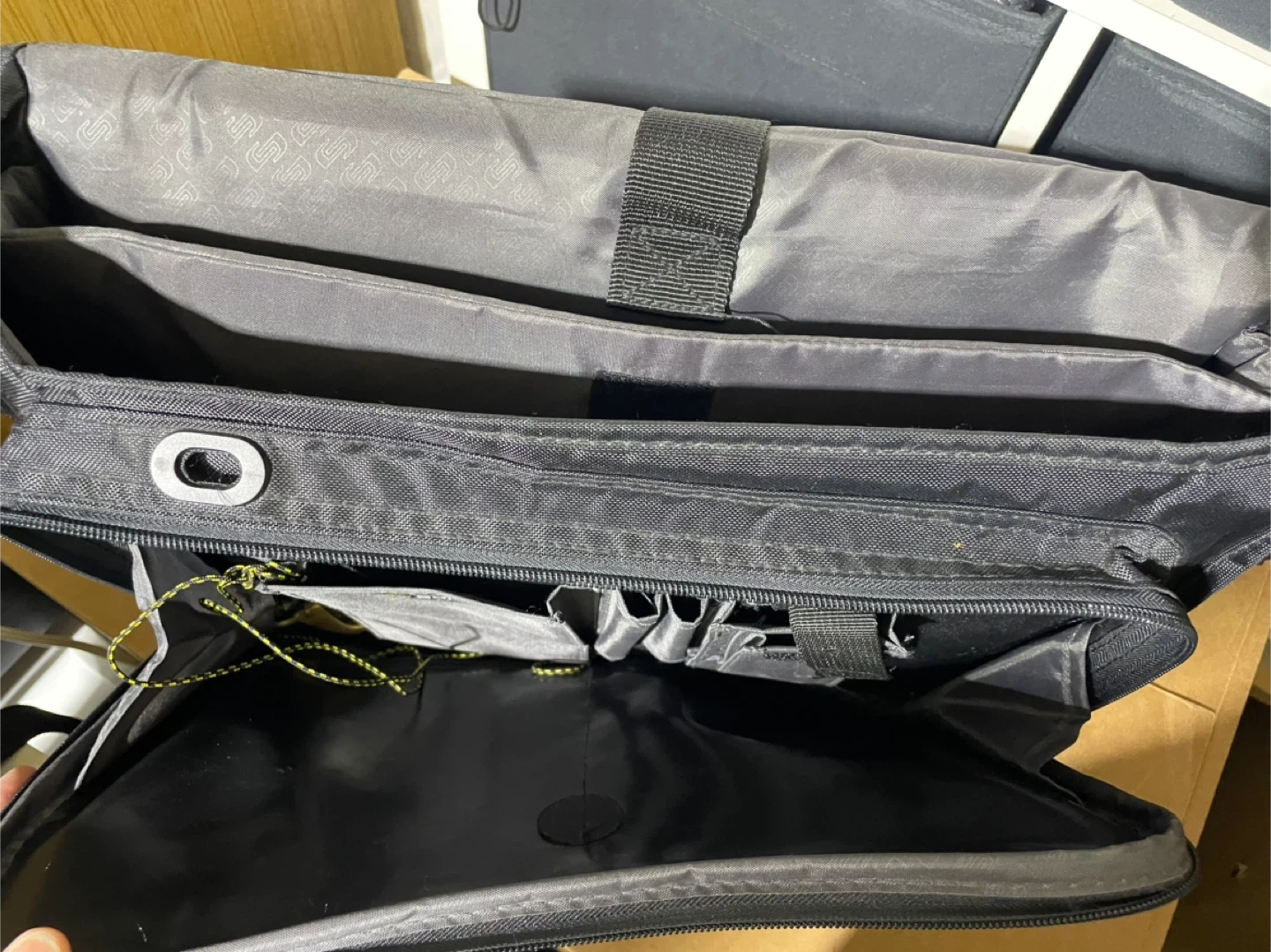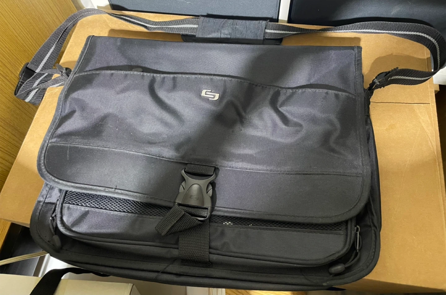 Selling a black Solo New York laptop bag. It has multiple compartments to keep everything organized from laptops, notebooks, schoolbooks, calculator and writing utensils. Perfect for school! Shoulder strap is easy to adjust and zippers work well. **Small tear on interior rear pocket, please see photos**