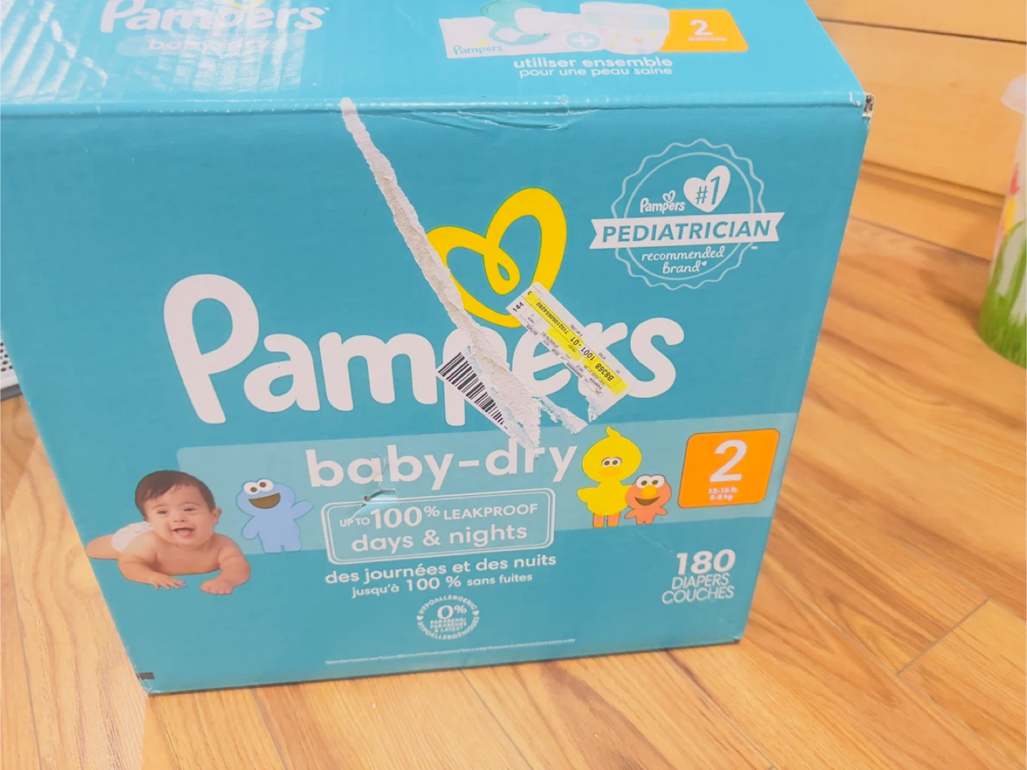 This is a box of 180 Pampers Baby-Dry diapers in size 2. They're designed for up to 100% leakproof days and nights. This box includes 180 diapers.