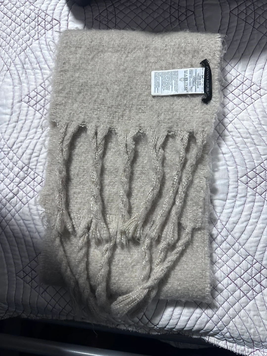 Cozy up with this lovely cream-colored knit scarf from Banana Republic! It's perfect for adding a touch of warmth and style to any outfit. The soft texture and neutral color make it a versatile accessory for fall and winter