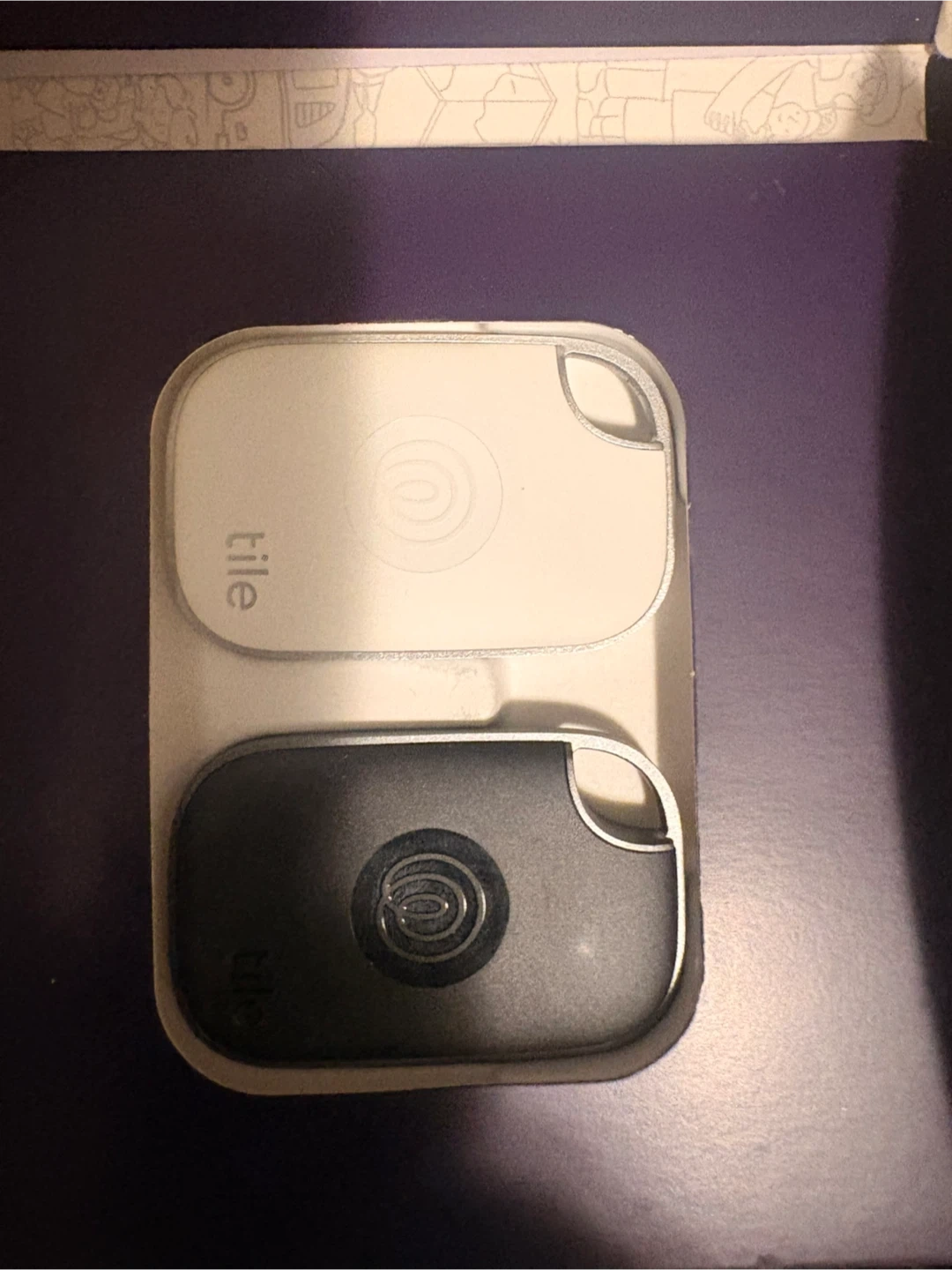 This is a 2-pack of Tile by Life360 Pro Bluetooth trackers, one in black and one in white. These powerful trackers include built-in SOS functionality. They're designed to help you find keys, bags, and more.