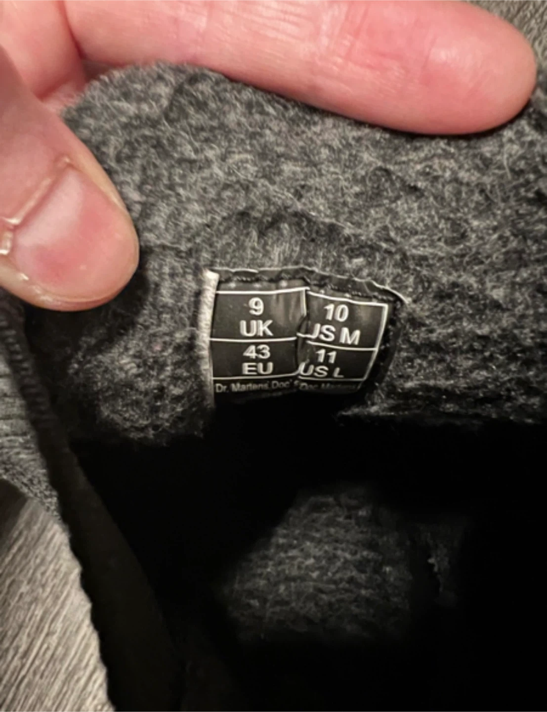 Men’s Dr. Martens 2976 Chelsea boots! They're lined with faux fur to keep your feet warm and comfy. These are a US size 10.