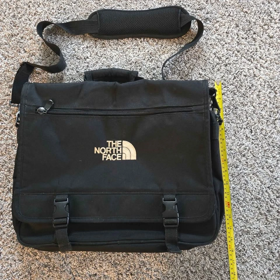 North Face laptop messenger bag. Zippers, straps, and rivets are working well, safe, and secure. Lots of pockets. Plastic part is peeling in one of the pockets. Plenty of life left in this. Great for students and business. Pick up in Buffalo Grove. Cash or Zelle pay. Check my profile for other items for sale, as I'm moving and decluttering.
