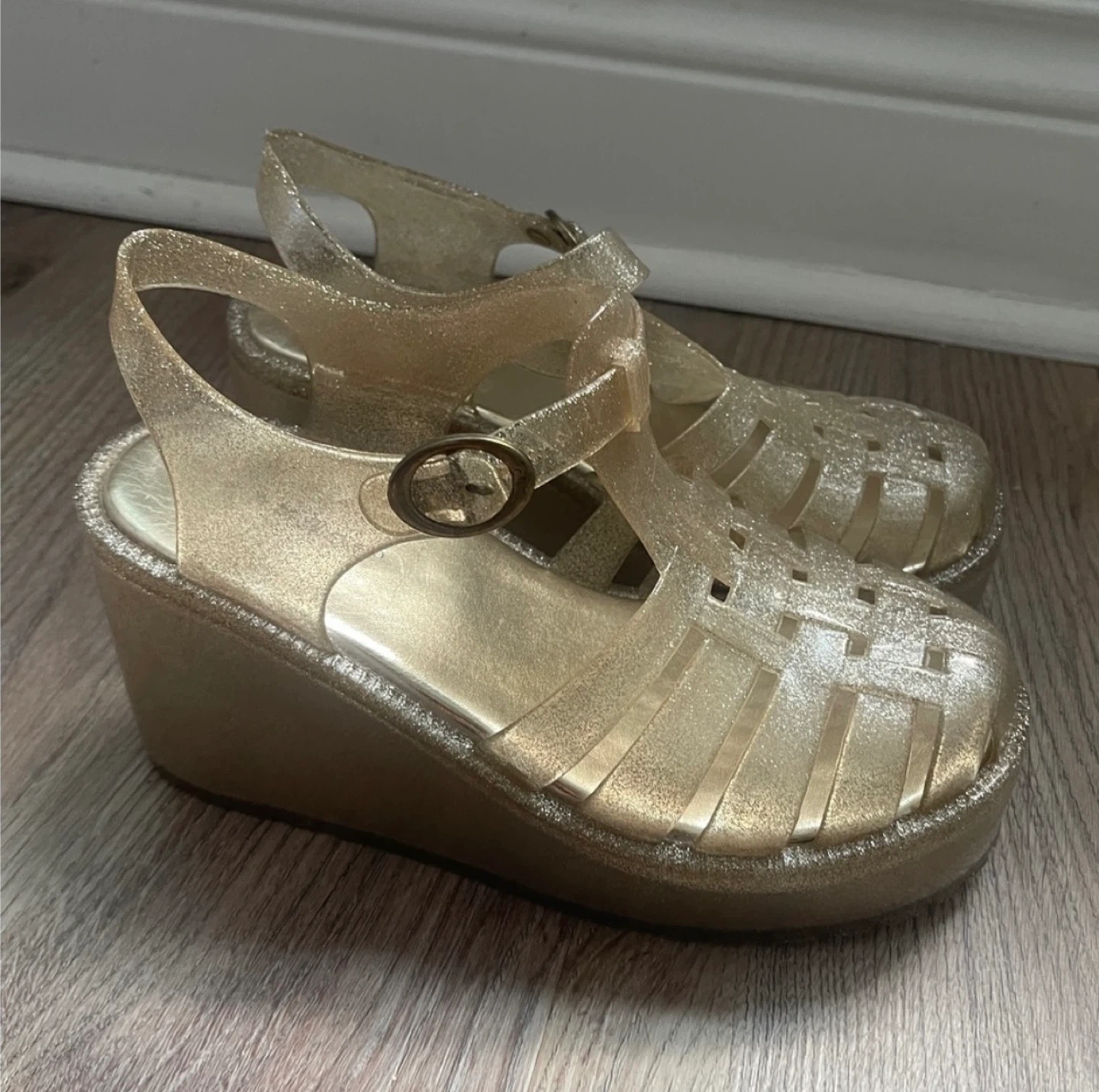Bamboo Silver/Gold Glitter Platform Jelly Sandals