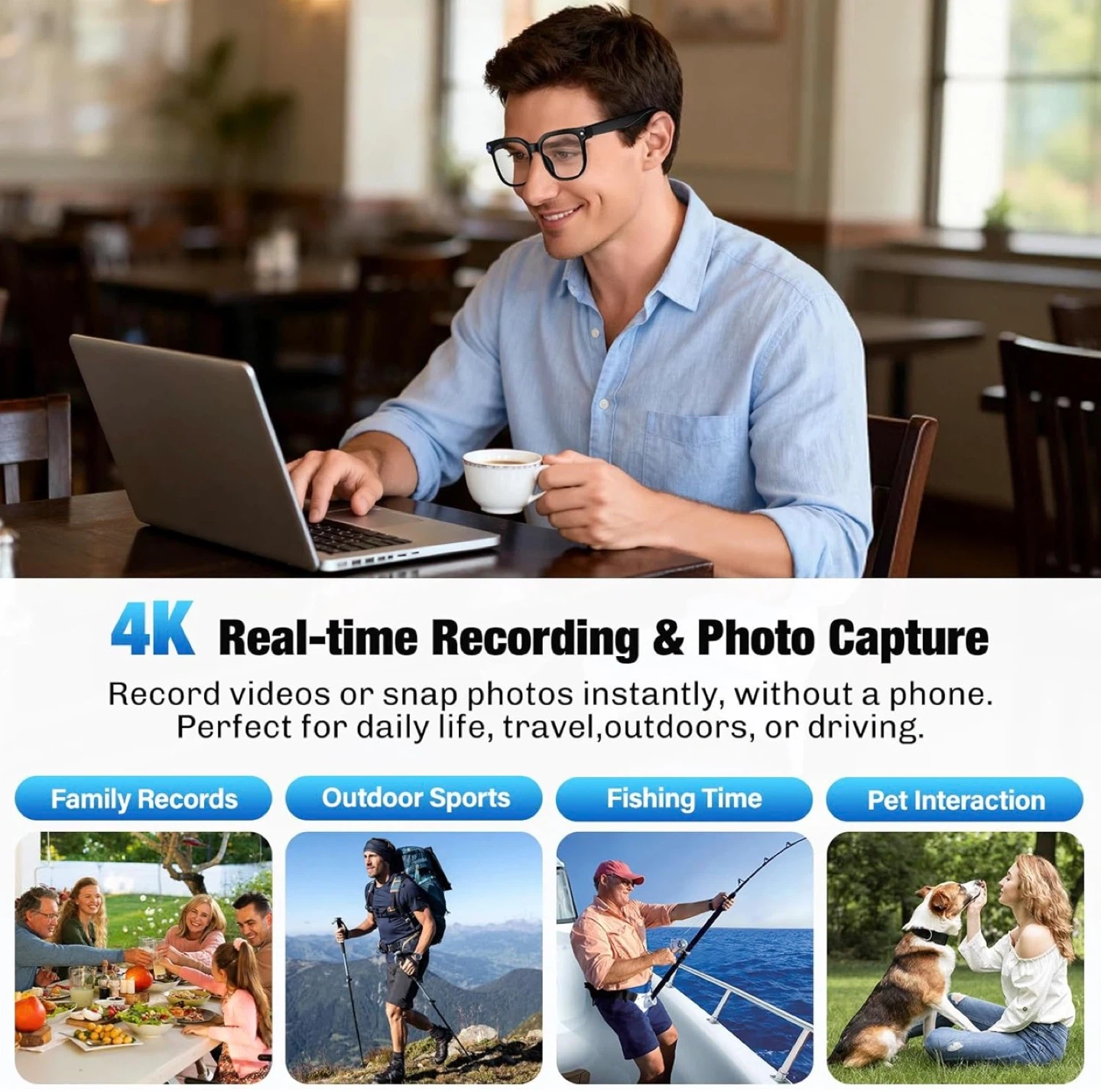 Smart Glasses with 4K Camera and AI Translation