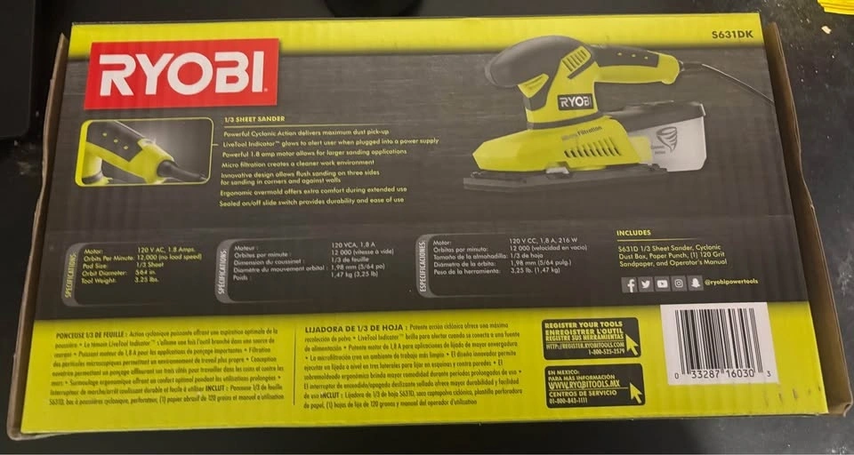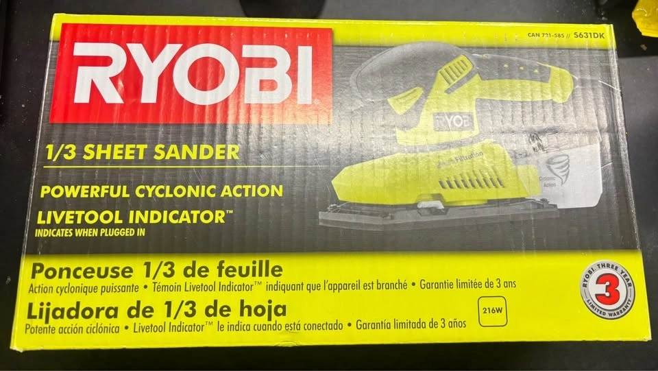 Buy & SellRYOBI 1/3 Corded Sheet SanderRYOBI 1/3 Corded Sheet Sander$45Model # S631DK. Brand new and unopened box.WHERE TO MEETCheck LocationView MapSELLERverifiedDaleWindsong782 reviews0 chats·0 favorites·21 viewsSEND CHAT TO SELLERHi Dale! I’m interested in your listing.Hi Dale! I’m interested in your listing.Get the Karrot app to chatSign In to chat
