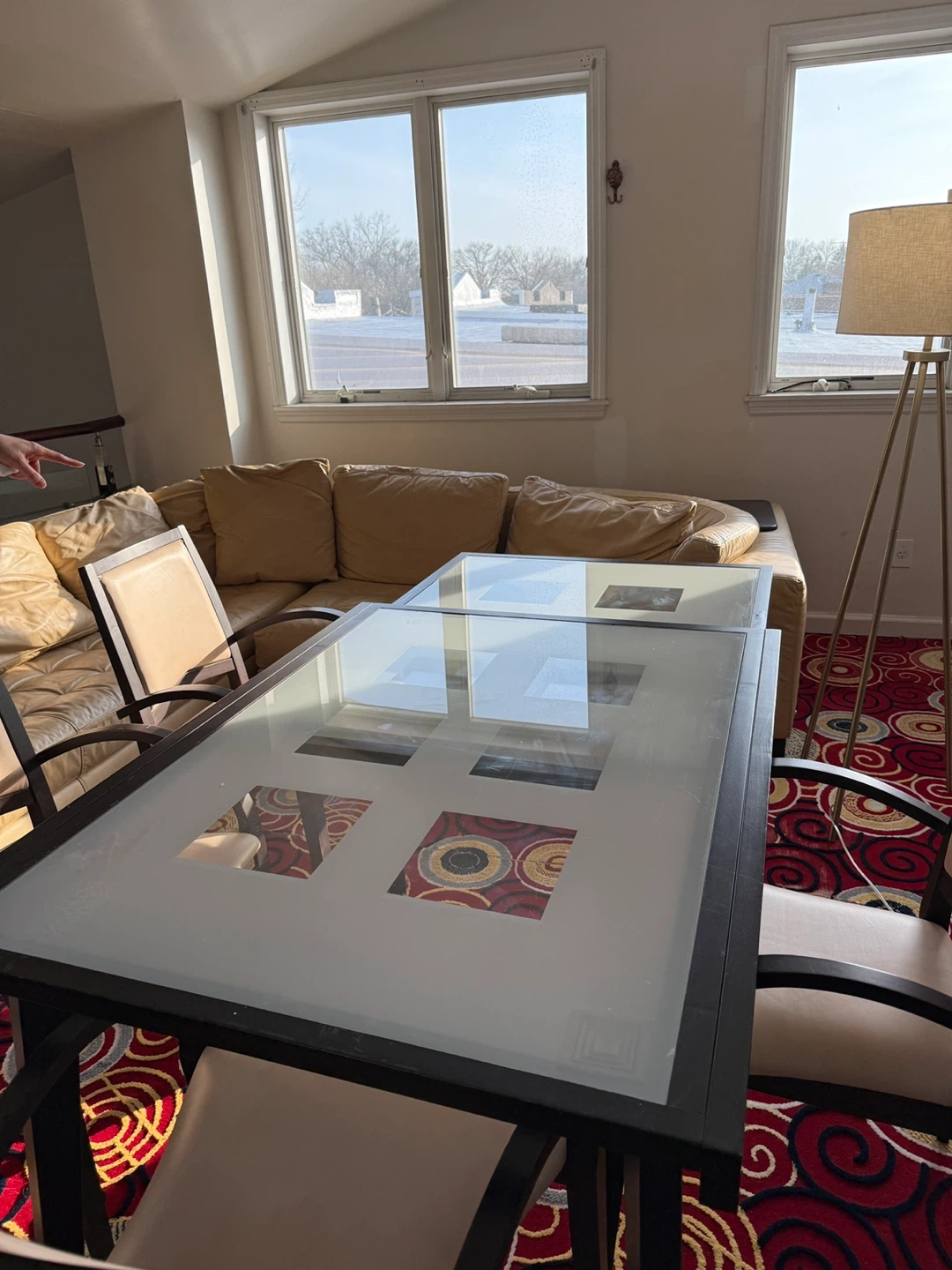 Buy & SellGlass Top Dining Table with Decorative InsertsGlass Top Dining Table with Decorative Inserts$170Dining table, chairs, and lamp for $170 Dining table and chairs $150 Lamp $50ConditionGoodWHERE TO MEETCheck LocationView MapSELLERSsjElmhurst45741 reviews0 chats·1 favorites·54 viewsSEND CHAT TO SELLERHi Ssj! I’m interested in your listing.Hi Ssj! I’m interested in your listing.Get the Karrot app to chatSign In to chat