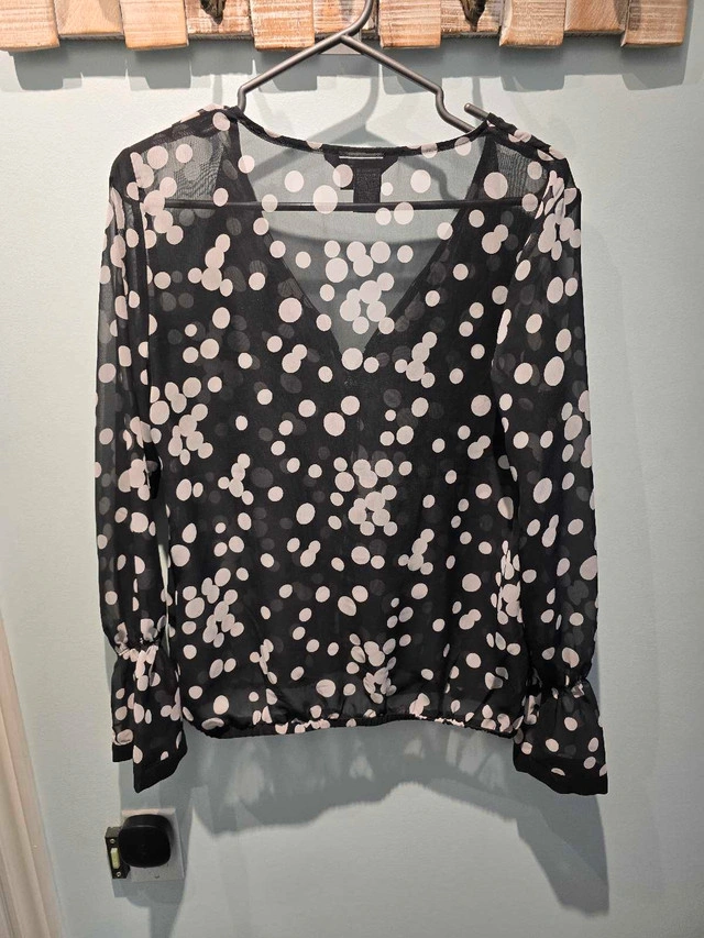 This is a chic Chapter One blouse, perfect for adding a touch of elegance to any outfit, featuring a stylish black and white polka dot pattern. It's in great condition, ready to elevate your wardrobe. Additional details: * Brand: Chapter One * Size: 8 * Colour: Black and white * Material: 100% Polyester This top has plenty of life left and is just waiting for its next adventure! If the ad is up, it's available!