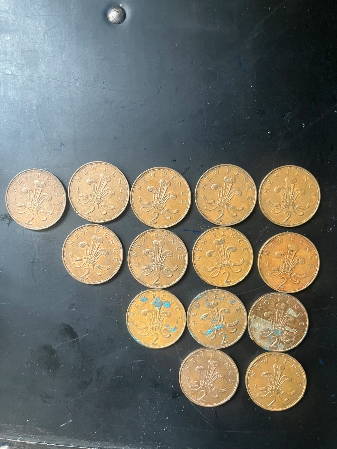 13 UK 2 Pence Coins - Various Years 1970s 1980s