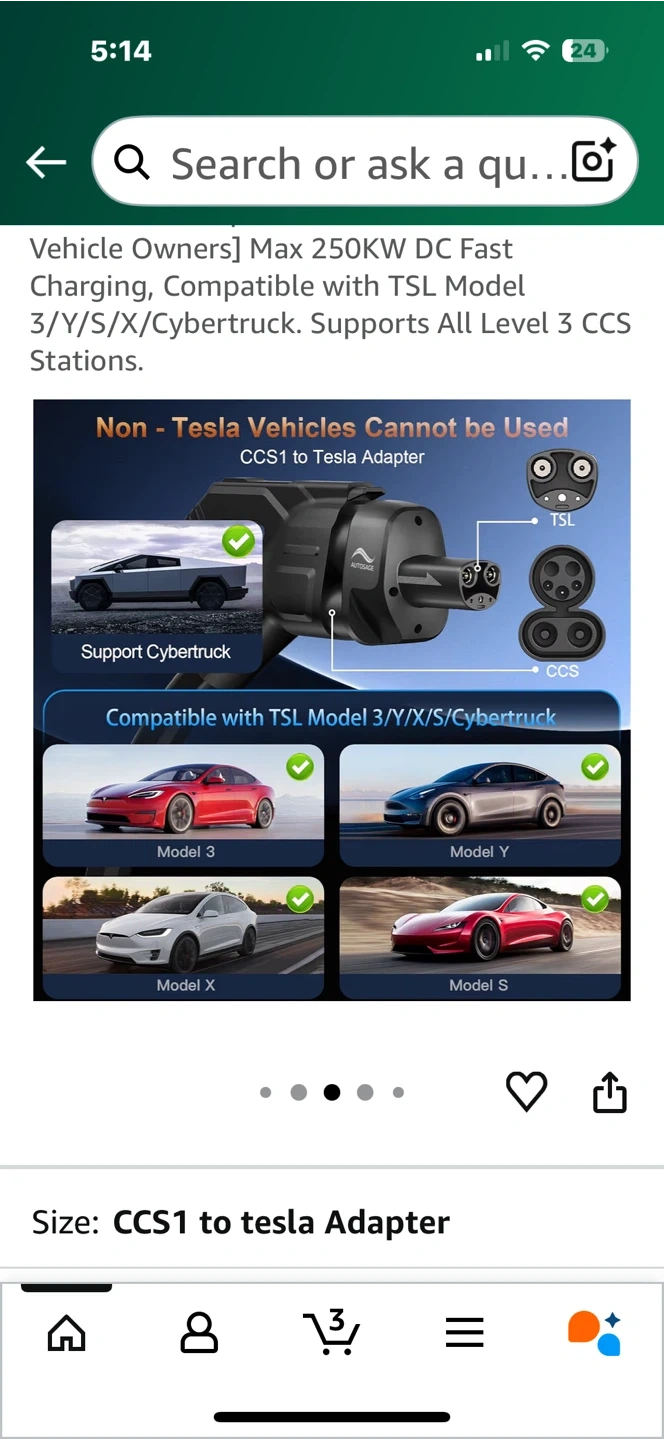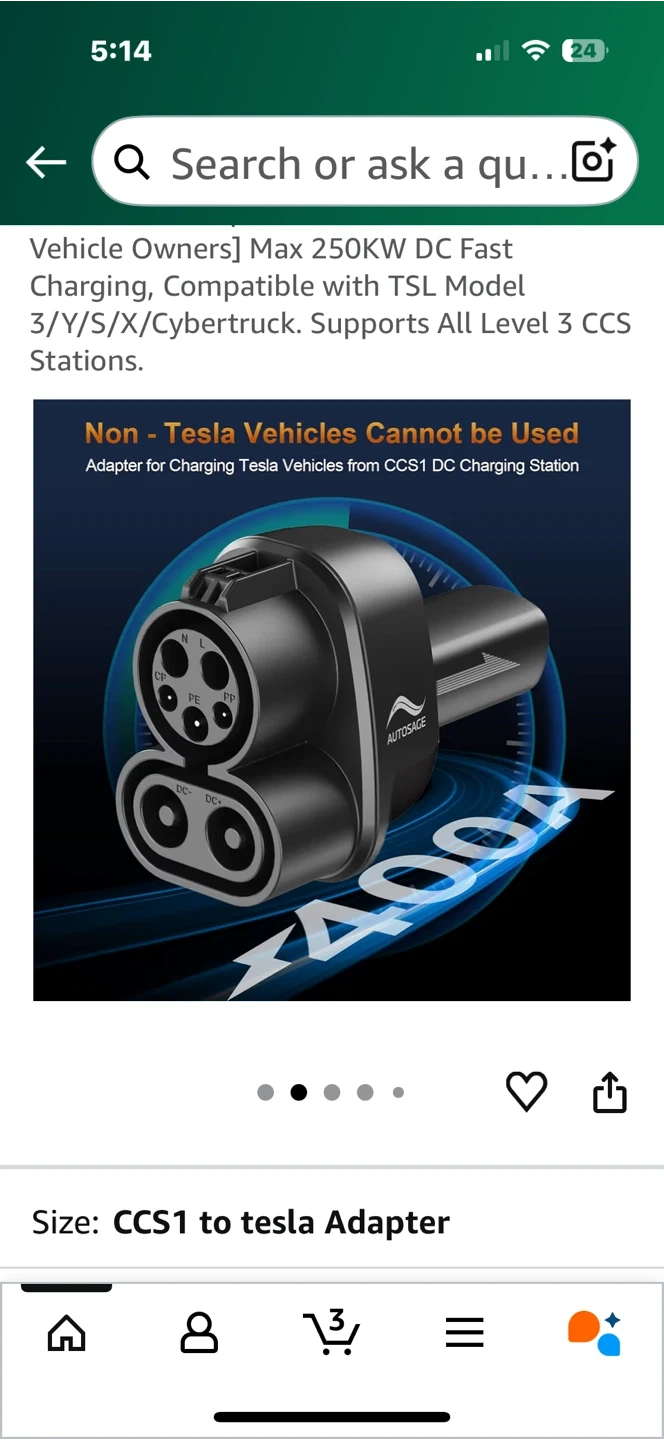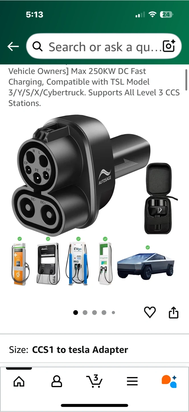 Selling a CCS to TSL adapter by AUTOSAGE, designed exclusively for Tesla vehicles. It supports up to 250kW DC fast charging and is compatible with Tesla Model 3/Y/S/X/Cybertrucks. This adapter allows Tesla vehicles to use Level 3 CCS stations. Easy to use and a must-have for Tesla owners!
