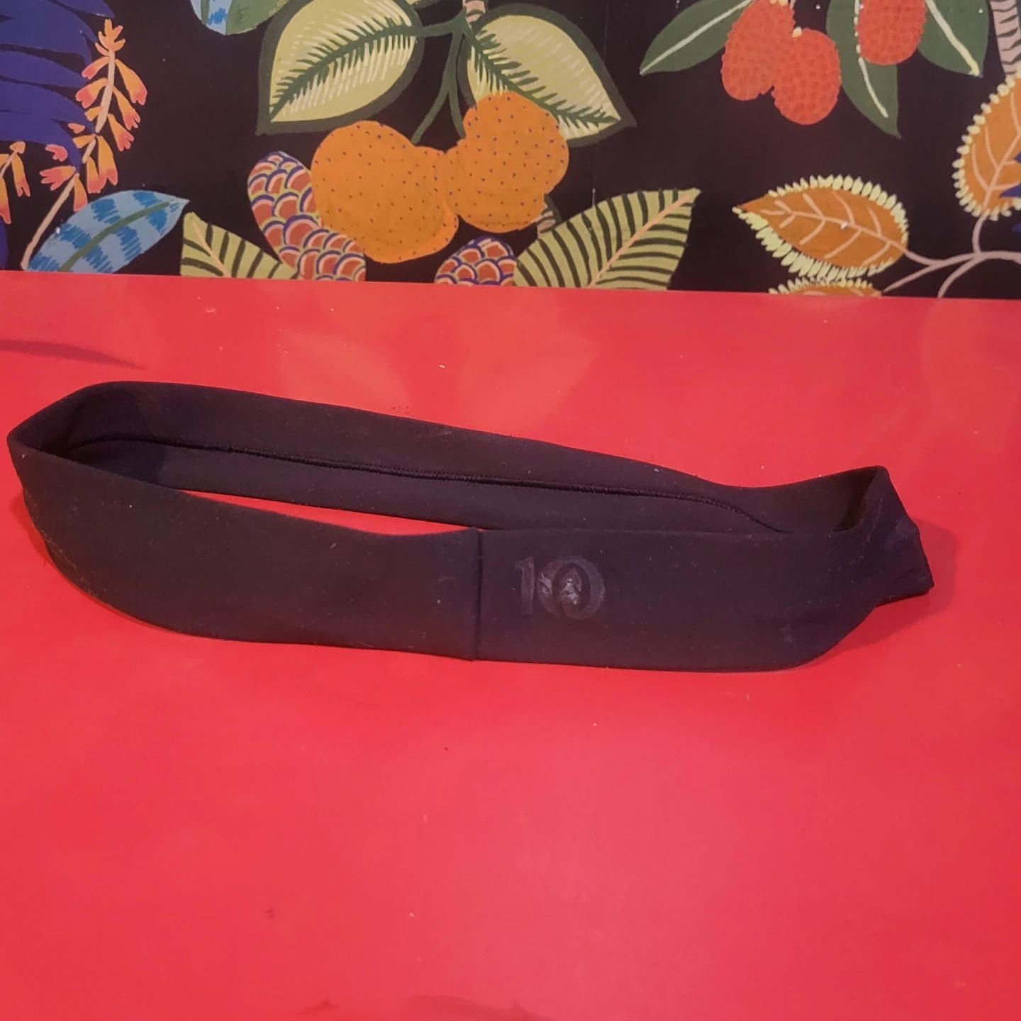 This is a black headband by tentree. It's made of a stretchy fabric material. It's useful for keeping hair out of your face during activities like yoga and working out.