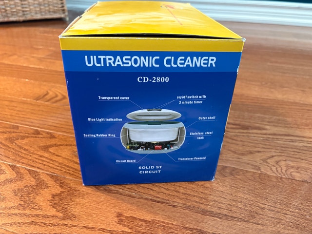 For sale: Bogue Systems Ultrasonic Cleaner Model CD-2800. This compact cleaner is in excellent condition—used only once and stored in its original box with all accessories included. It’s perfect for gently cleaning jewelry, eyeglasses, watches, dentures, razors, coins, and other small items using ultrasonic waves for a deep, thorough clean without damaging delicate surfaces. Key features: Tank capacity: 600ml (about 20oz); Power: 35W with 42kHz ultrasonic frequency; Digital display and timer with 5 preset cycles and auto shut-off; Includes attachments like a watch holder and CD/DVD holder; Quiet operation and easy to use. I bought this new but realized I don’t need it as much as I thought. No scratches, dents, or issues—works like brand new. Great for home use, hobbyists, or even small businesses like jewelers. Condition: Used - Like new. Payment: Cash accepted.