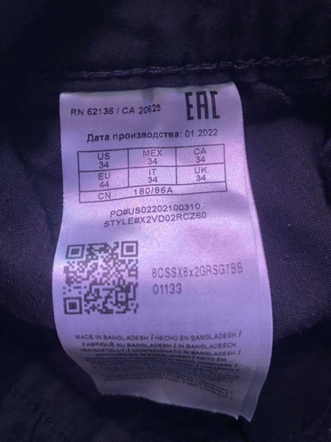 These Guess cargo shorts are black and come with a red logo belt. They feature multiple zippered pockets for secure storage. The waist size is 34.