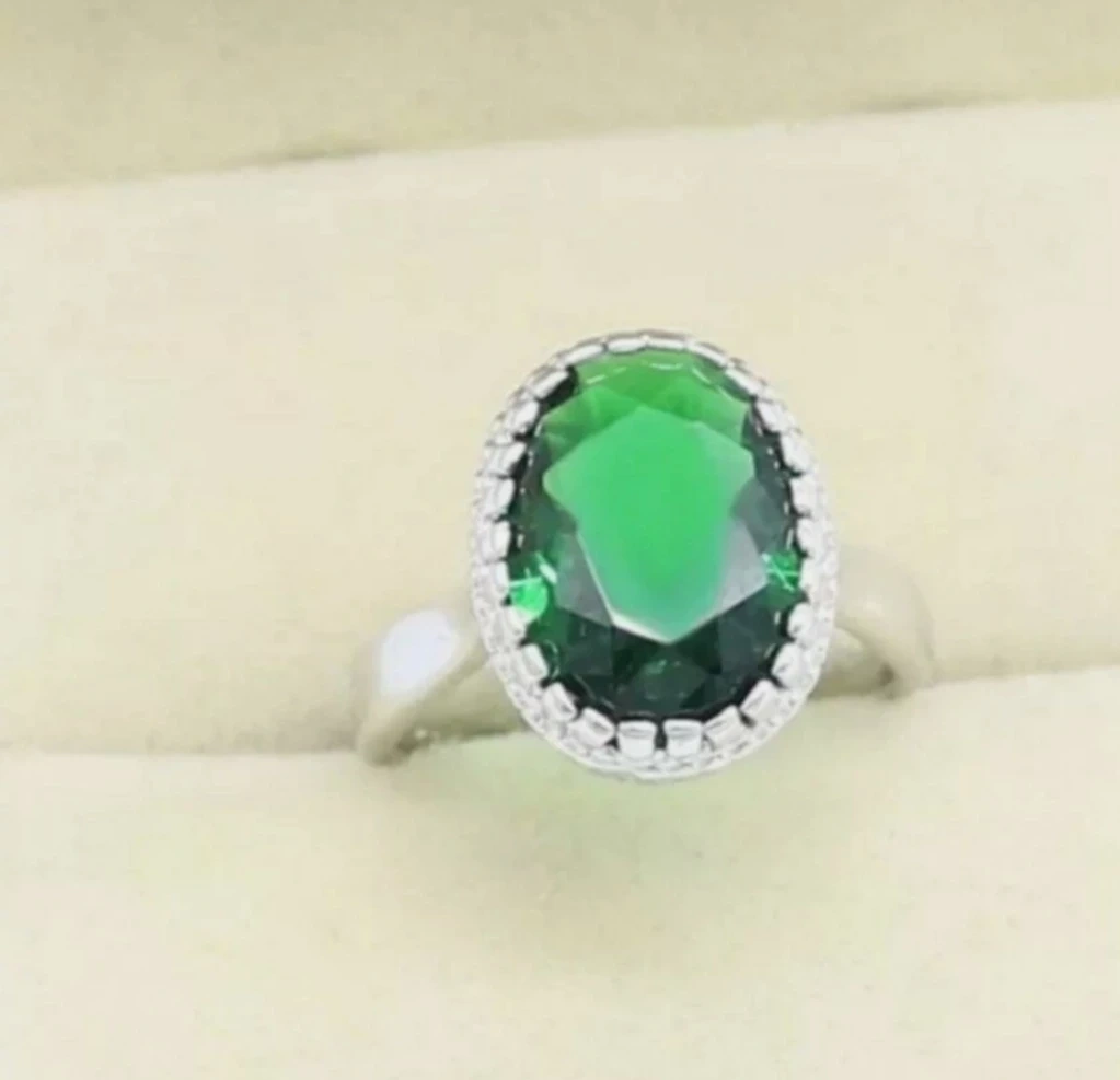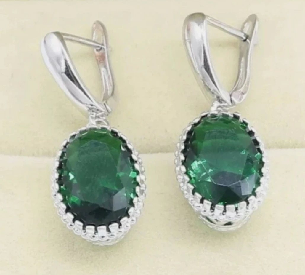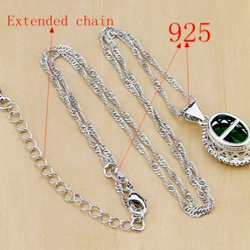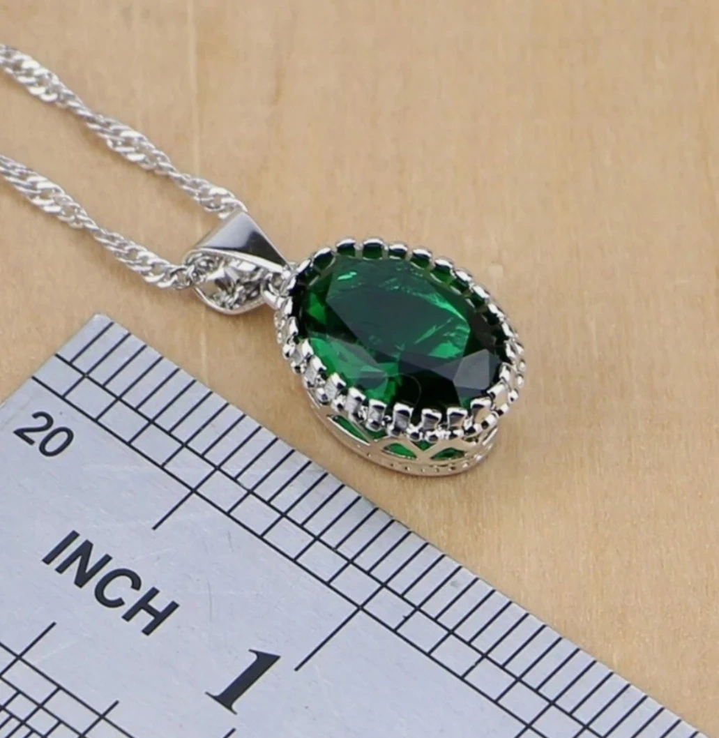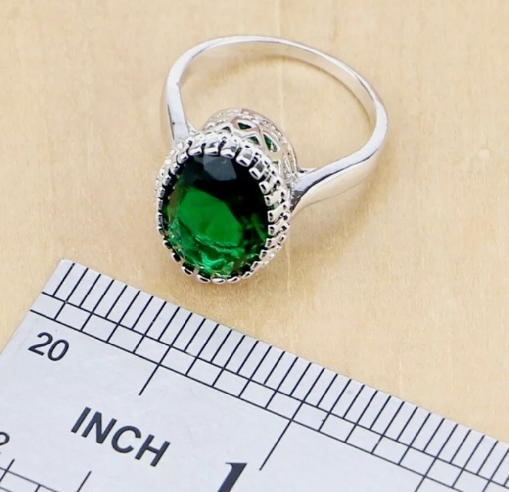 925 Silver Emerald Green Stone Jewelry Set