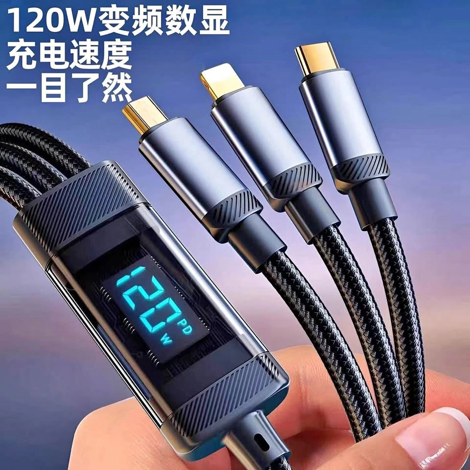 Tired of juggling cables? This is the one cable to rule them all. Charge your iPhone, Android, or USB-C device at full speed β up to 120W PD fast charge β and track charging in real time with the built-in digital display. β 3-in-1 Multi-Charging Head: Type-C, Lightning, Micro β 120W PD Super Fast Charging β Smart Digital Wattage Display β Supports Data Transfer @ 480Mbps β Heavy-Duty Nylon Braided Cable (wonβt break) β Works with Apple, Samsung, Huawei, Oppo, and more β Perfect for cars, travel, or one-cable setups Charge 3 devices at once. No mess. No guesswork. π Great for car use β π Great for home & work β π Must-have for travel.