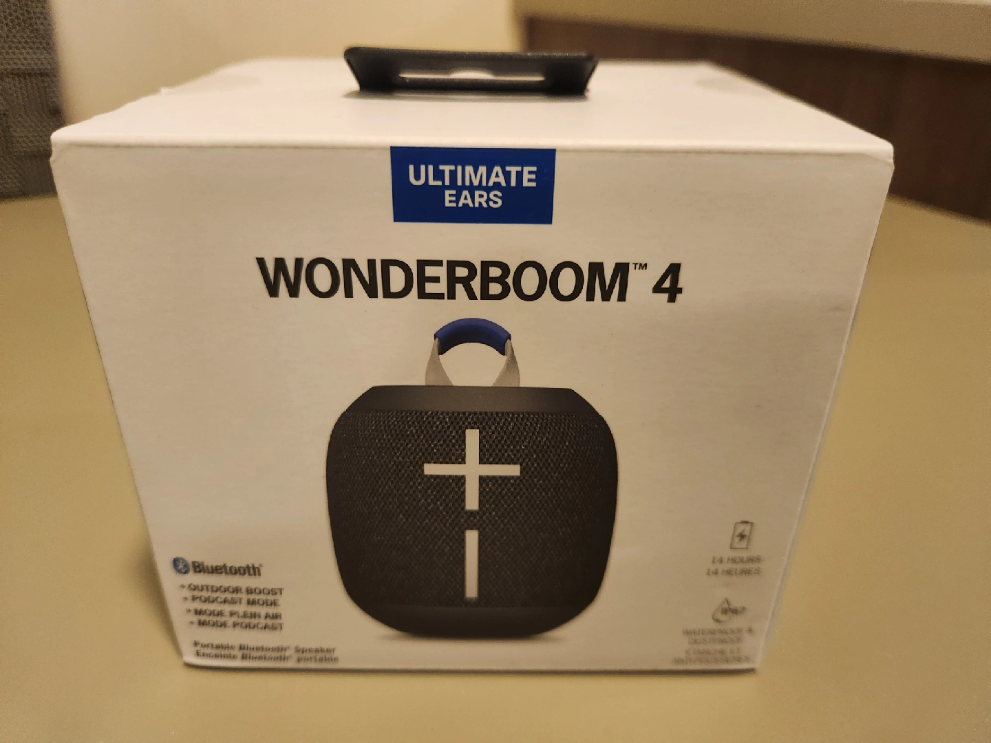 Selling an Ultimate Ears Wonderboom 4 portable Bluetooth speaker! It's waterproof and dustproof, perfect for taking tunes on the go. Enjoy up to 14 hours of playtime! Comes in its original box. Brand new