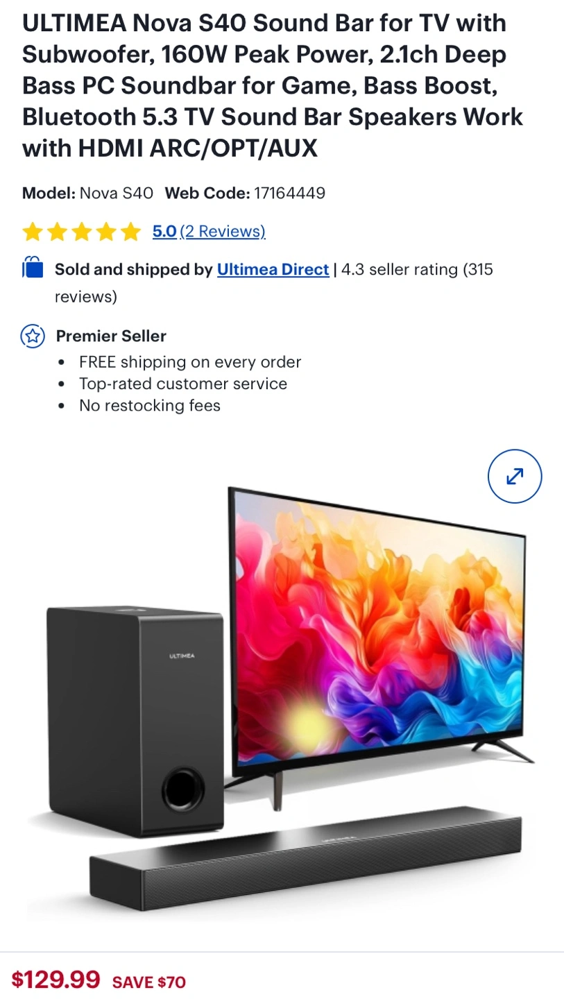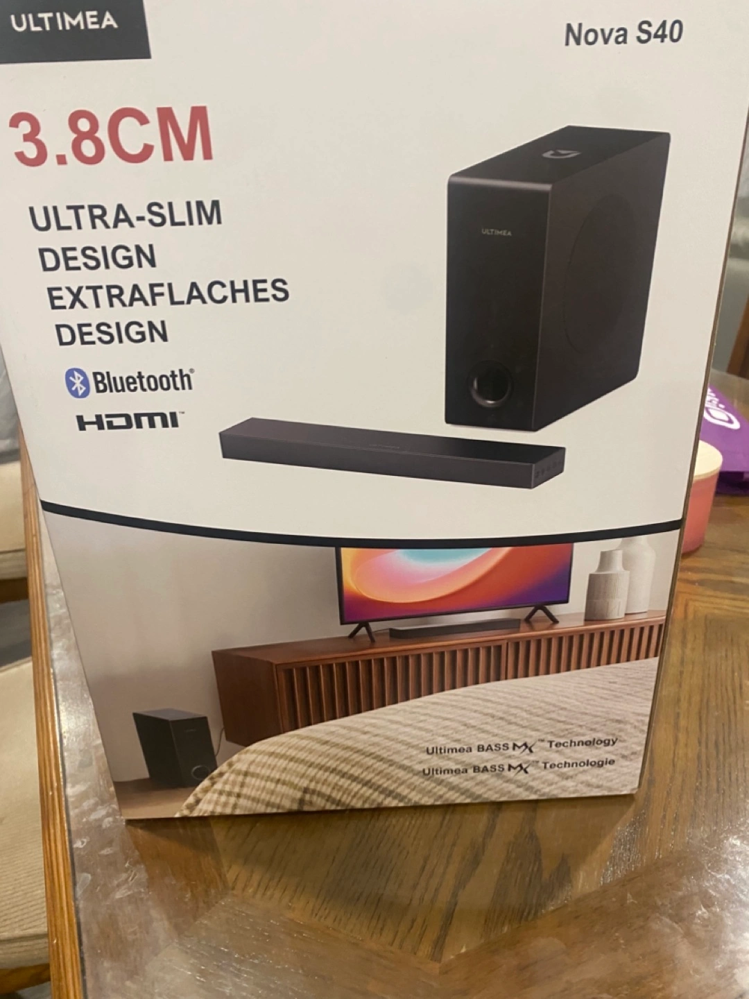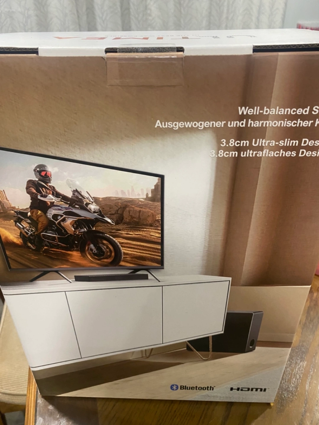 Ultra-slim design. 160W peak power. Bluetooth and HDMI compatible. Includes subwoofer. Bass boost. Works with PC, TV, and game consoles.