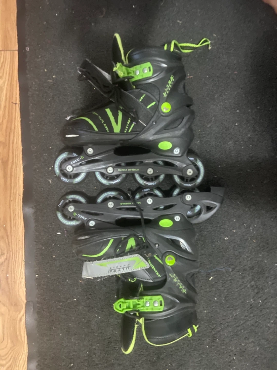 10Selling a pair of Ultra inline skates in black and green! They're size 5-8 for youth. Ready for some outdoor fun?