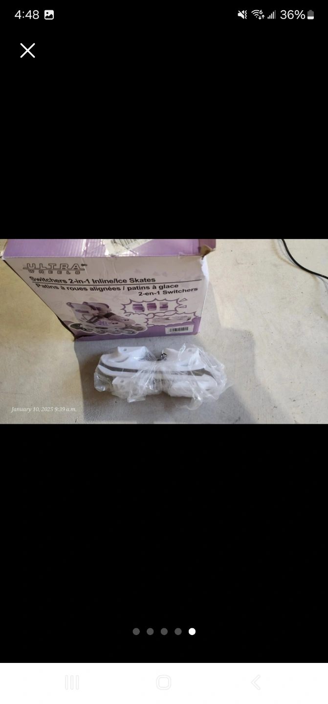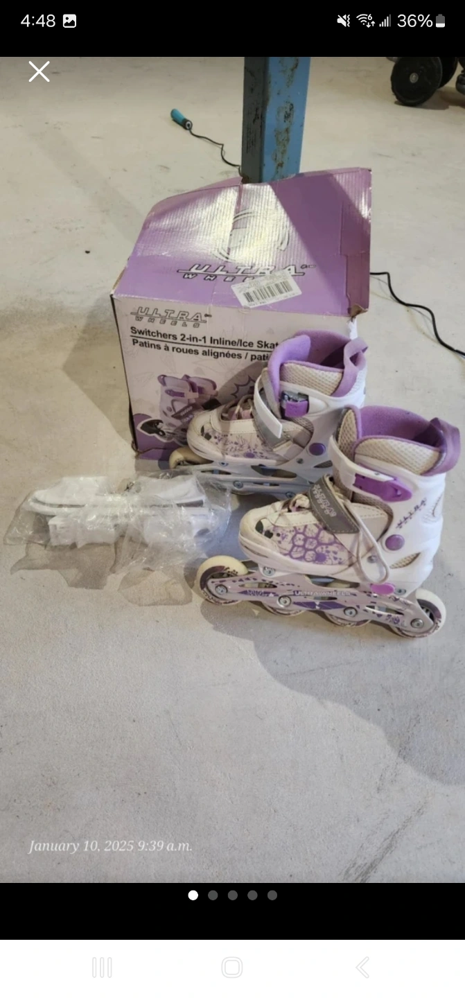 Ultra Sliders brand inline skates. Size 1-4. White and purple. 2-in-1 design. Includes box.skates never used.