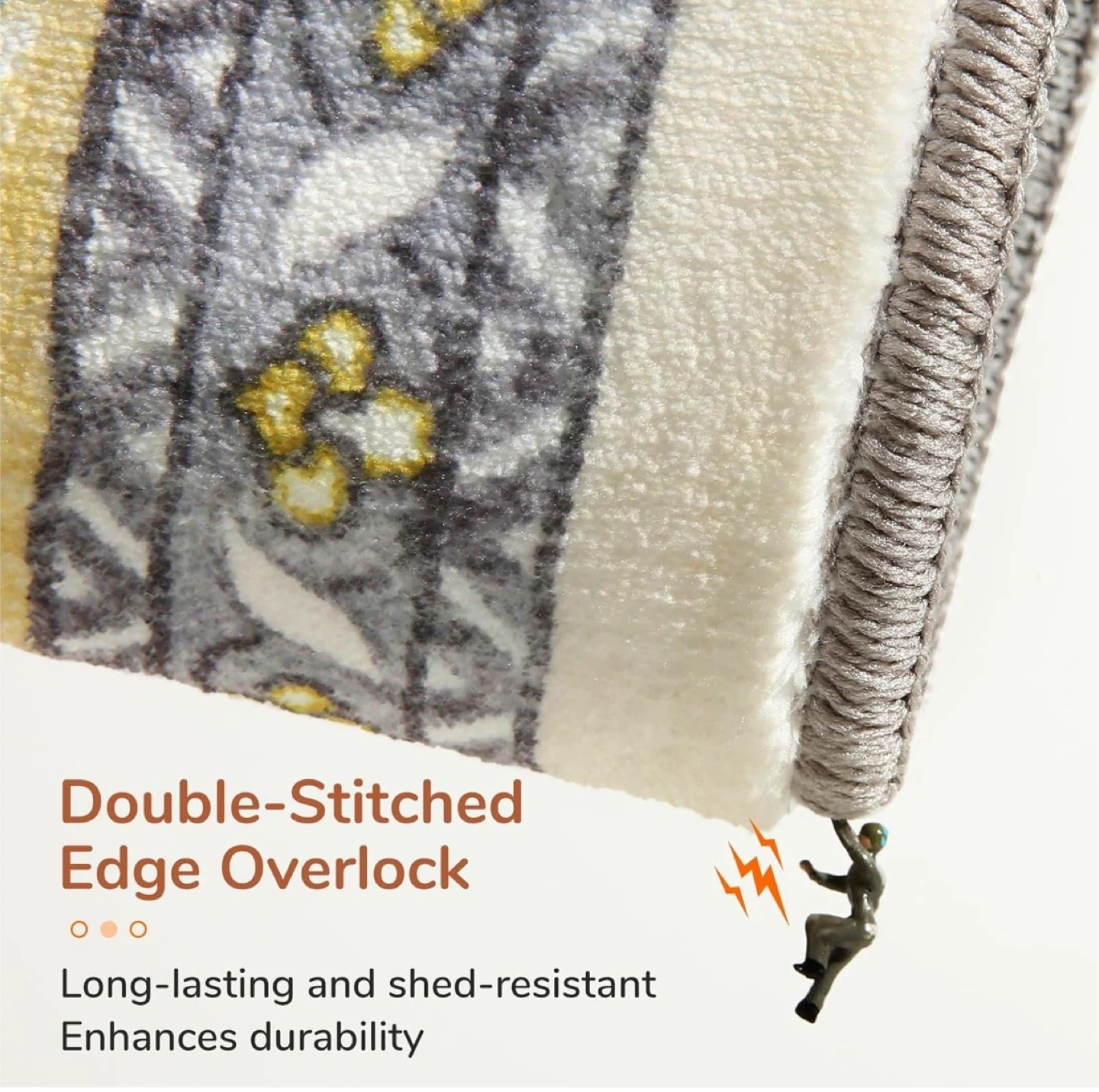 23This rug is ultra soft and made of faux cashmere! It's ideal for walking barefoot and is long-lasting and shed-resistant, enhancing durability. The edge is double-stitched with an overlock. It's about 2mm to 4mm thick.