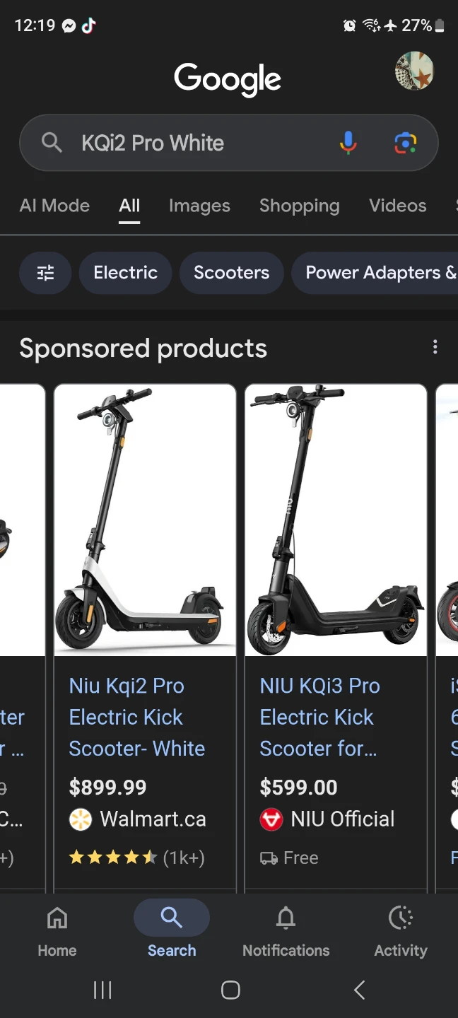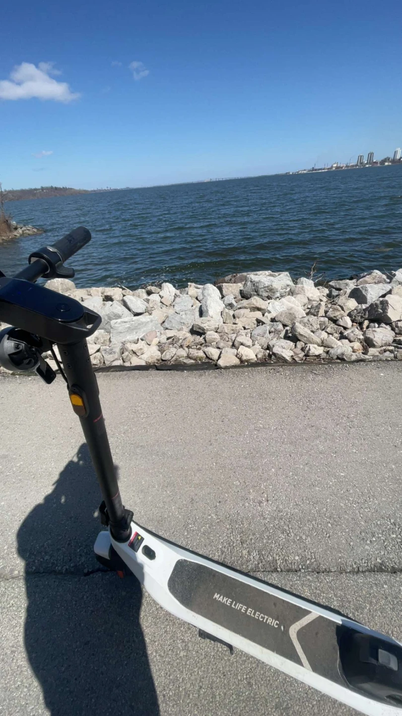 NIU KQi2 Pro electric kick scooter in white. This scooter is designed for urban commuting and recreational use. It offers a smooth and efficient ride. 40 km range and top speed 30 comes with box if you want comes with charger and tools that came with