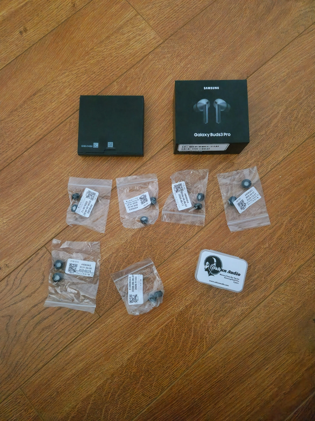 Selling a pair of Samsung Galaxy Buds3 Pro in excellent condition! They come with the original box and a variety of different sized ear tips to ensure a perfect fit. These earbuds deliver fantastic sound quality and are super comfortable for everyday use. Grab them while you can!