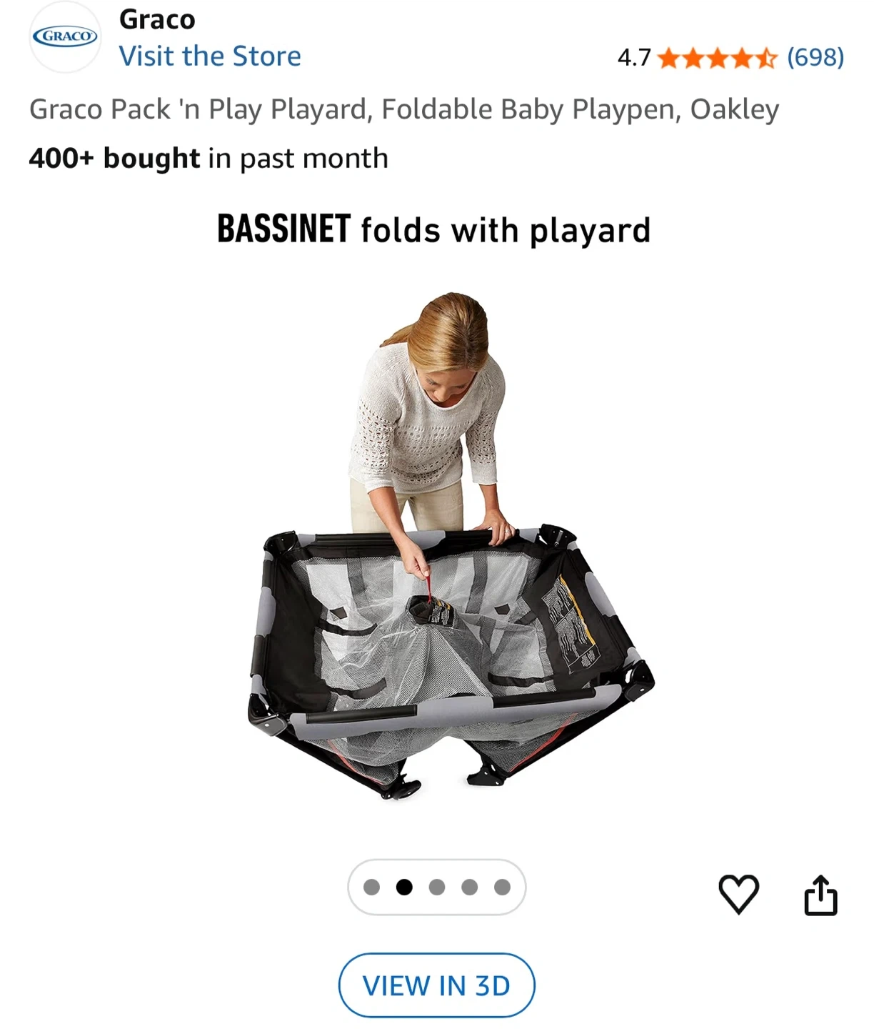 This Graco Pack 'n Play Playard is a foldable baby playpen. It comes with a convenient carrying bag for transport. Its mesh sides provide ventilation.