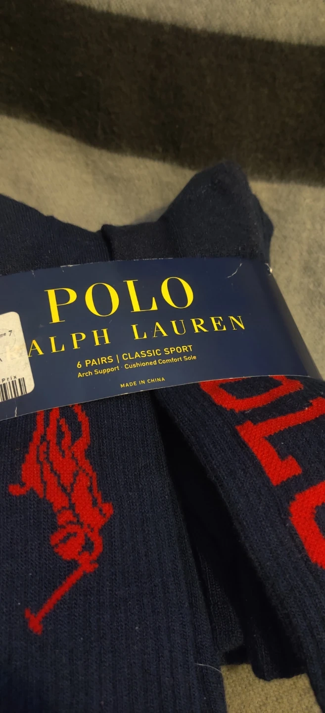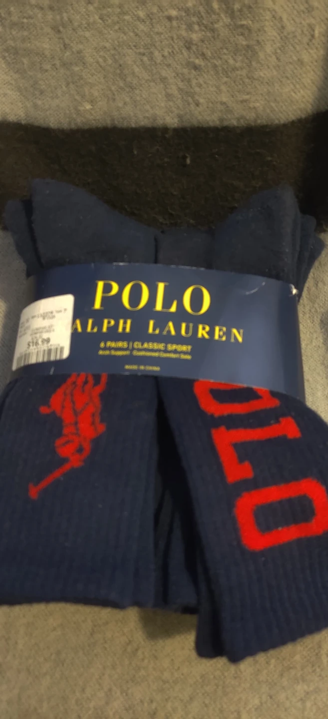 Six pairs of navy blue Polo Ralph Lauren classic sport socks. These socks offer arch support and a cushioned comfort sole. Shoe size 6-12.5
