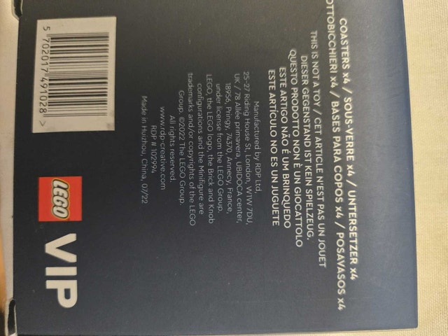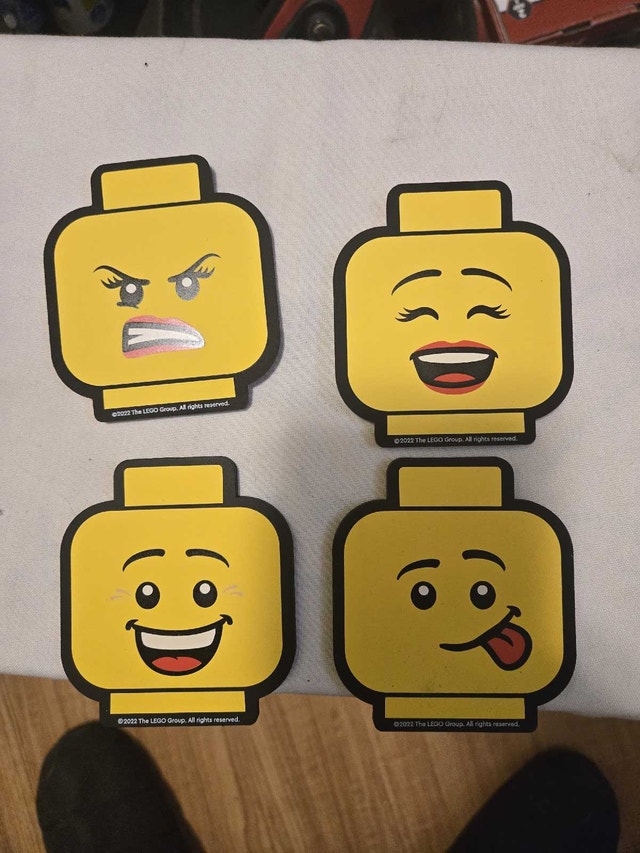 Add a touch of Lego fun to your space with these Lego VIP Coasters! This set of 4 is in new condition, featuring fun Lego head emoji designs. Perfect for protecting your surfaces with a playful twist. They are double sided, made of rubber. These delightful coasters are looking for a new home and are ready to bring a smile to your face every time you use them. If the ad is up, they're available!