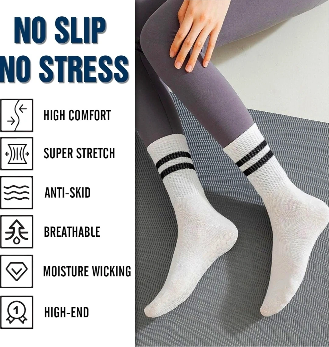 These TPediSoft crew socks come in a convenient 4-pair pack. They're made with breathable mesh and feature durable grip dots for enhanced stability. A perfect one-size-fits-most design, suitable for women's shoe sizes 6-10. They're great for yoga, home, or workouts!