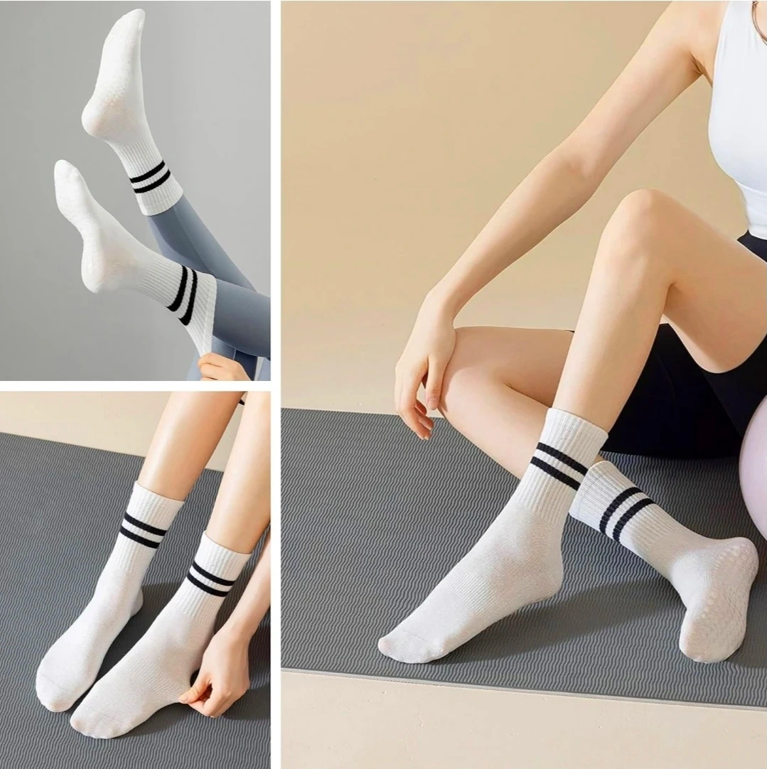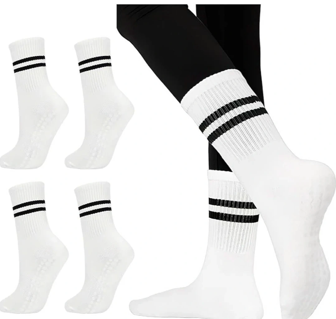 TPediSoft 4 Pair White Crew Yoga Socks with Grips