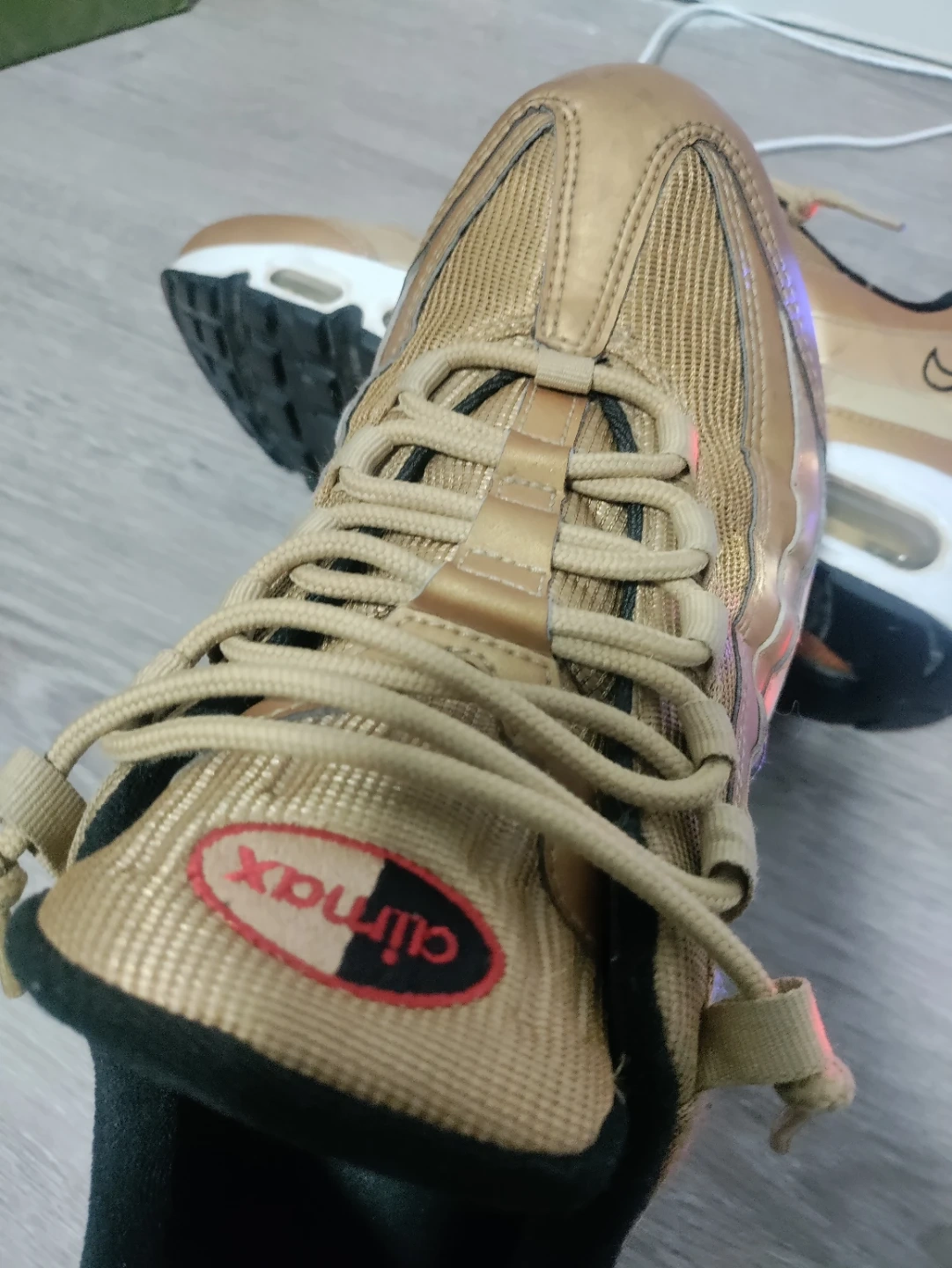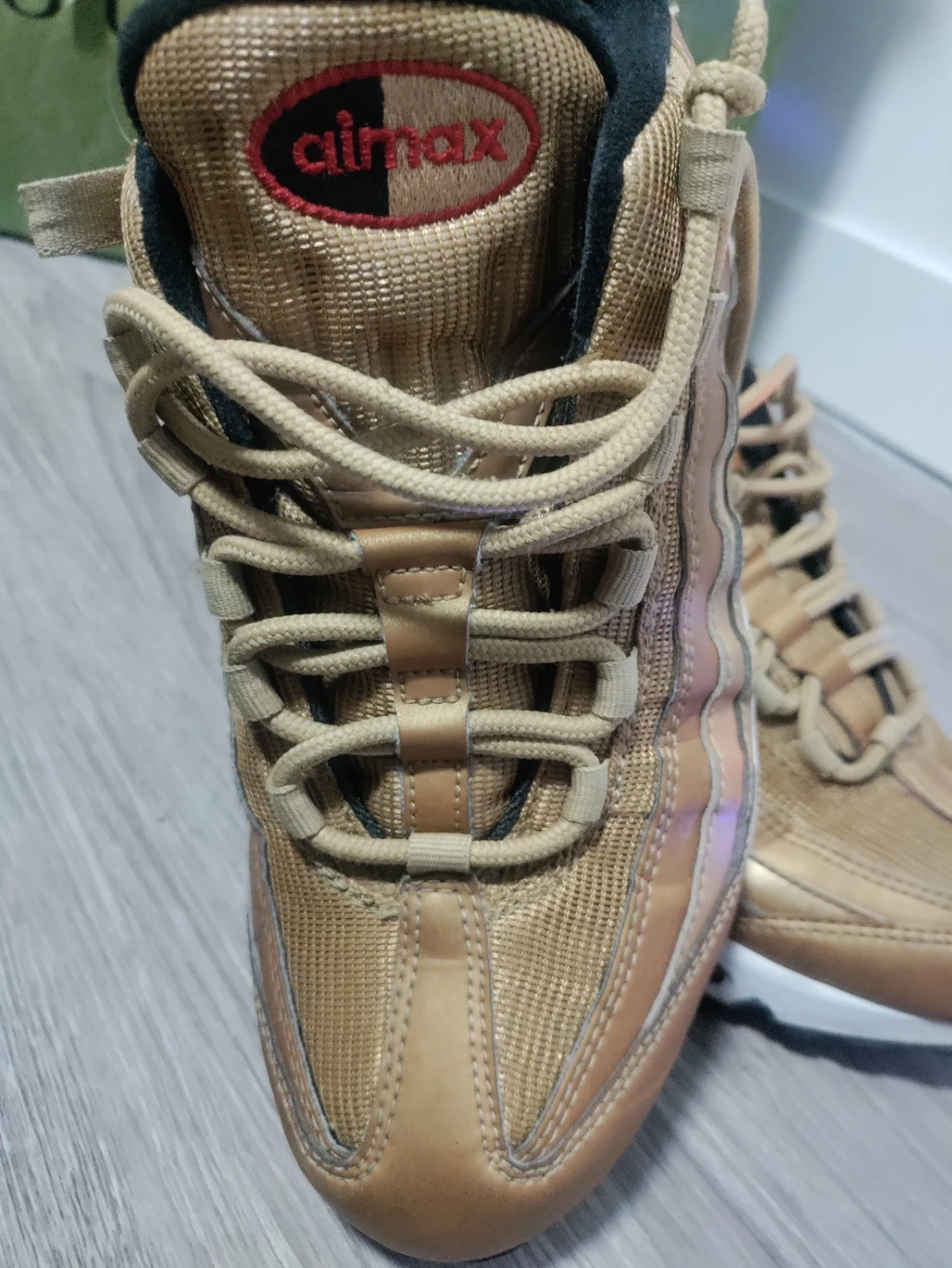 Gold Nike Air Max 95 sneakers. Features the iconic Air Max cushioning system. A standout colourway that's sure to turn heads!