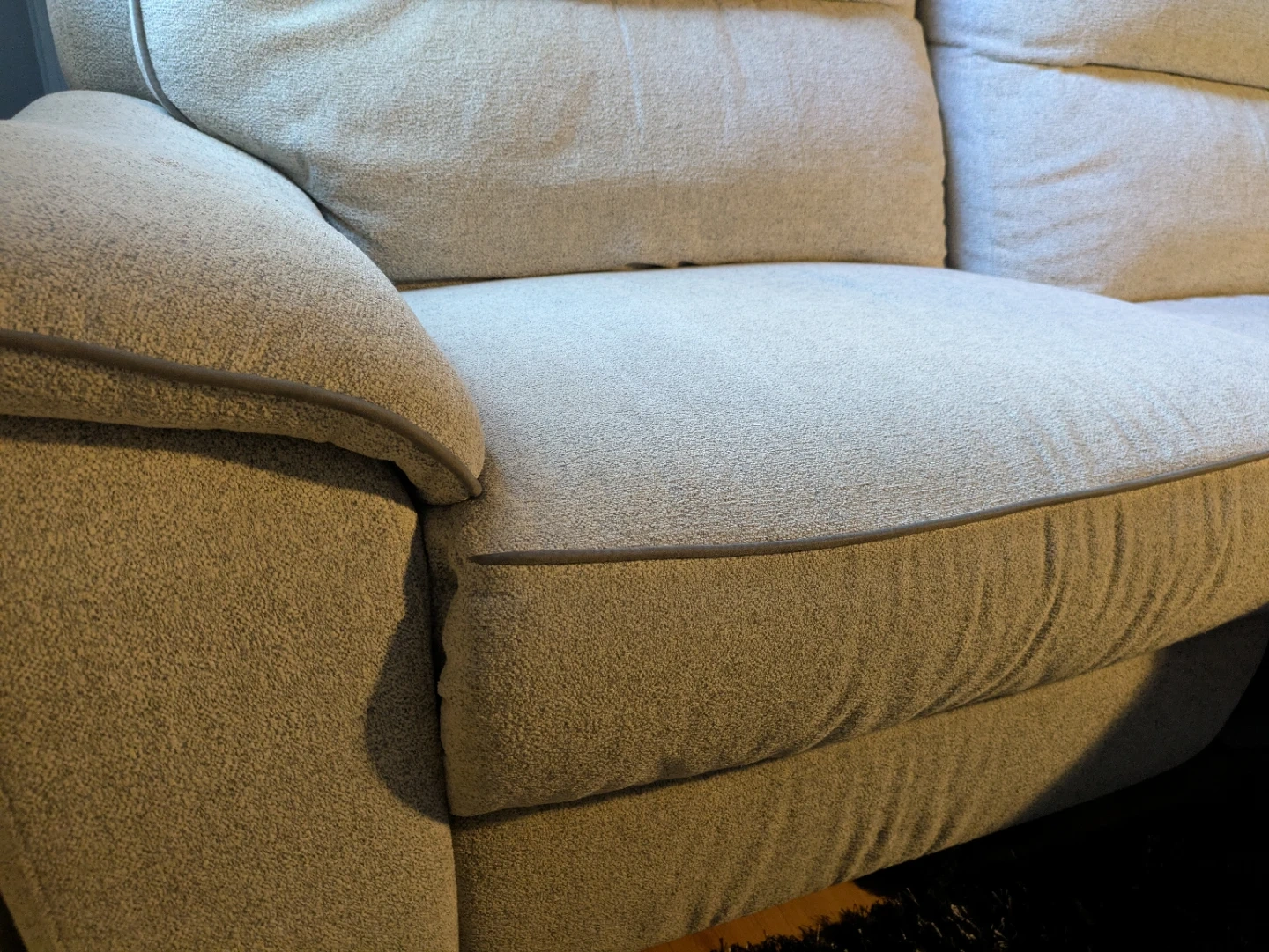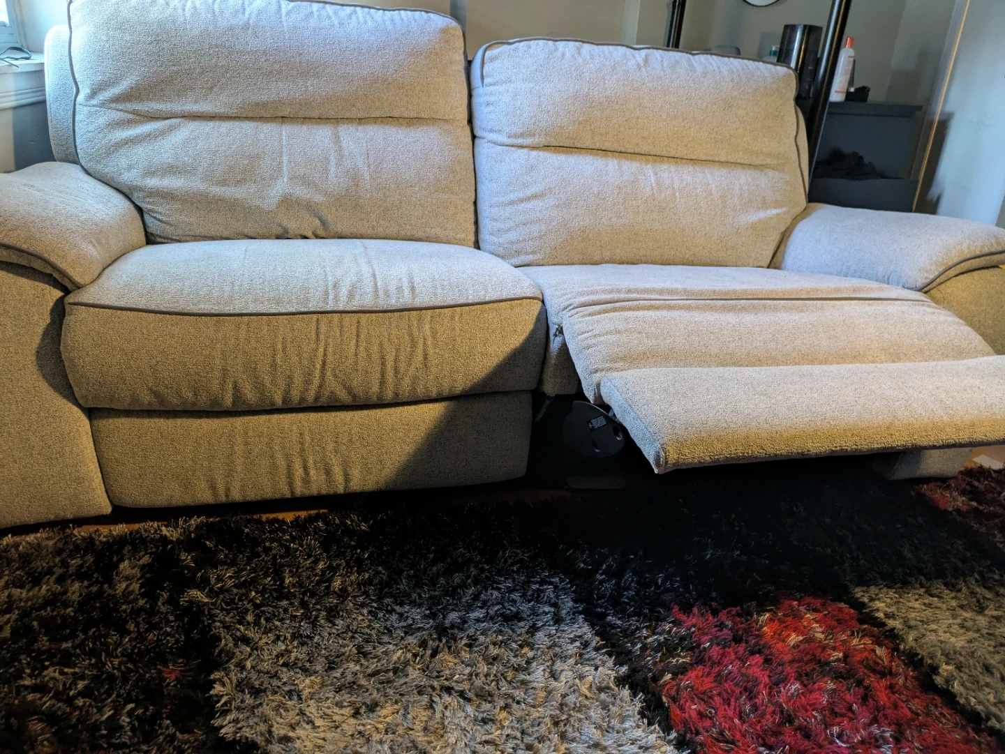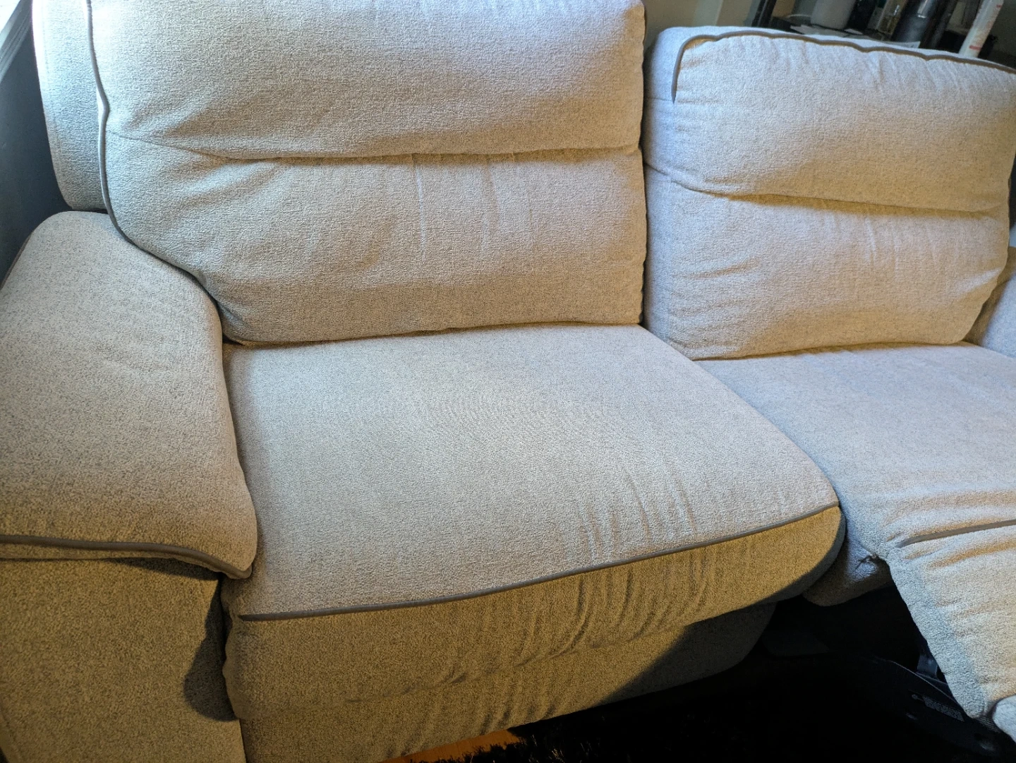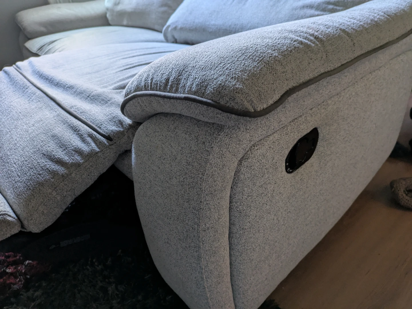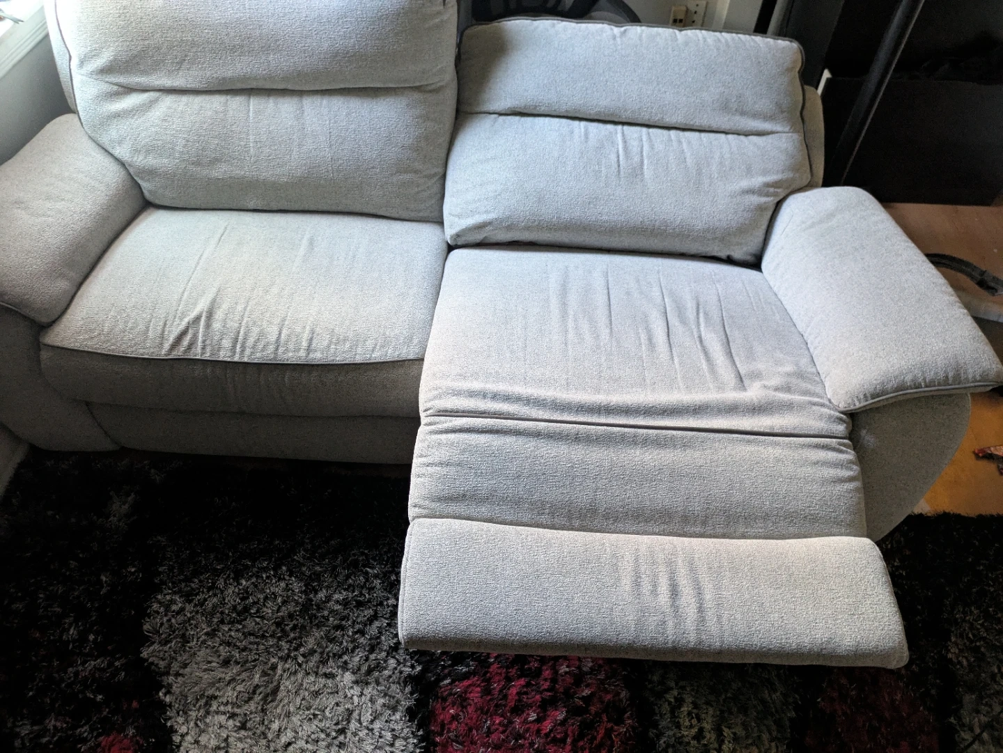 Nice and big ! 79 inches long for extra large seats. Both sides recline all the way back to lay. Very clean !! Smoke and pet free. The back of the couch come off so it will fit anywhere