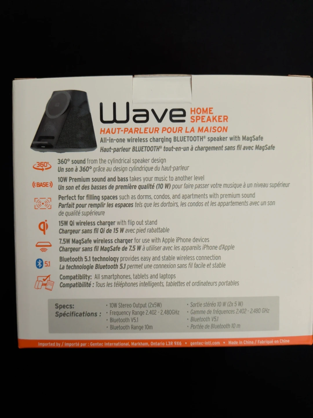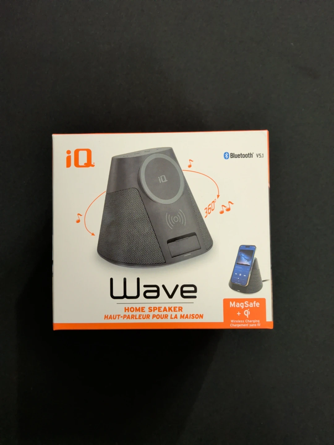 This iQ Wave Home Speaker offers 360° sound with premium 10W audio and bass. It features MagSafe Qi wireless charging for compatible devices. It's a compact speaker perfect for dorms, condos, and apartments.