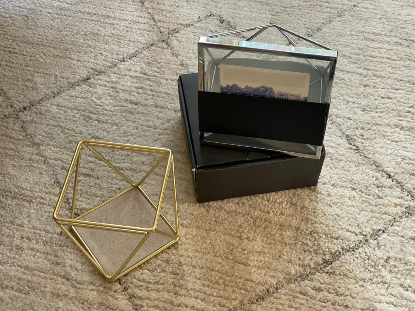 76Selling a stylish Umbra Prisma photo frame, perfect for displaying your favourite memories! It’s unused and It comes with its original box. Frame size 6” x 6” - I don’t think they don’t have this size anymore Photo frame $15 Also included is a trendy gold jewelry holder, great for organizing earrings, bracelets, and more. Can hold anything, pens and mini plants… The dimensions are 6cm x 6cm x 4cm. No box included. Jewelry holder tray $10 $20 in a set
