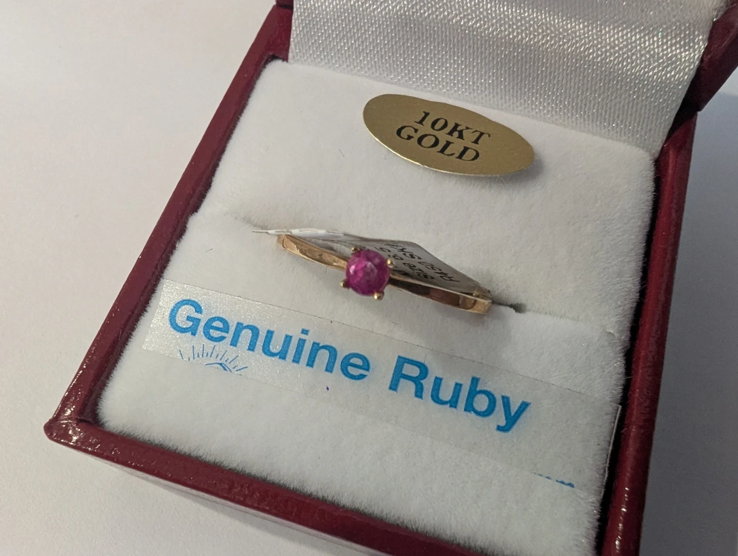 Brand new 10kt yellow gold natural genuine ruby gemstone ring for sale. Size 6.5 gold ring, 0.85 grams, made in Canada, July birthstone gem stones. $180 FIRM.