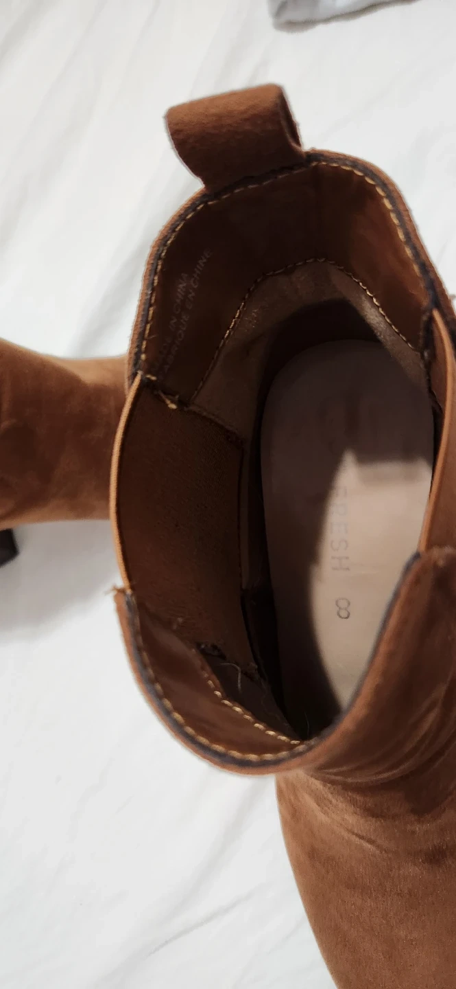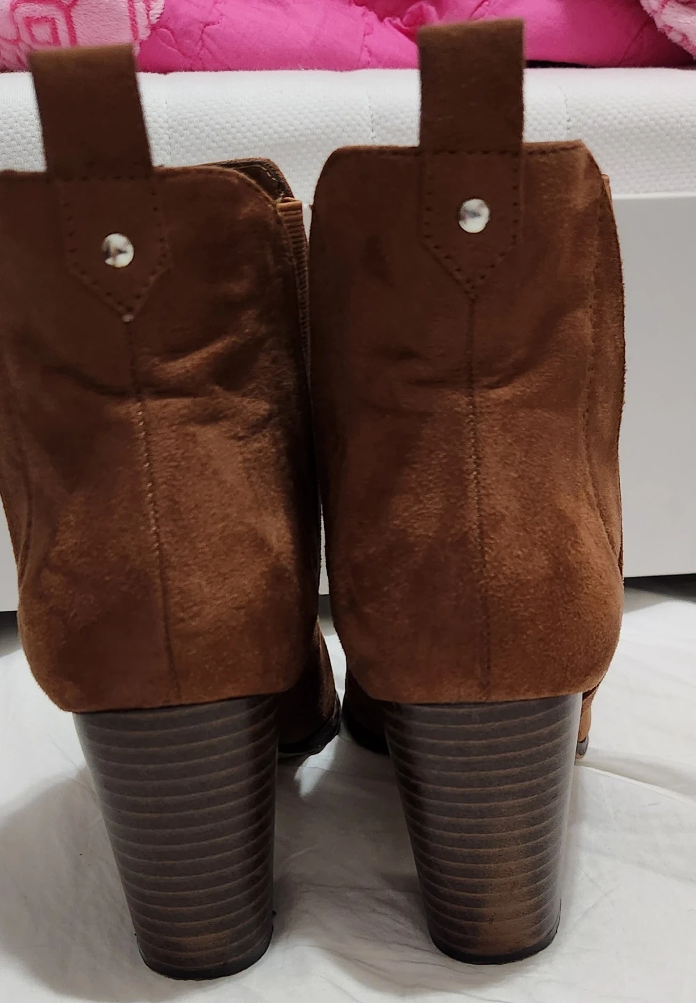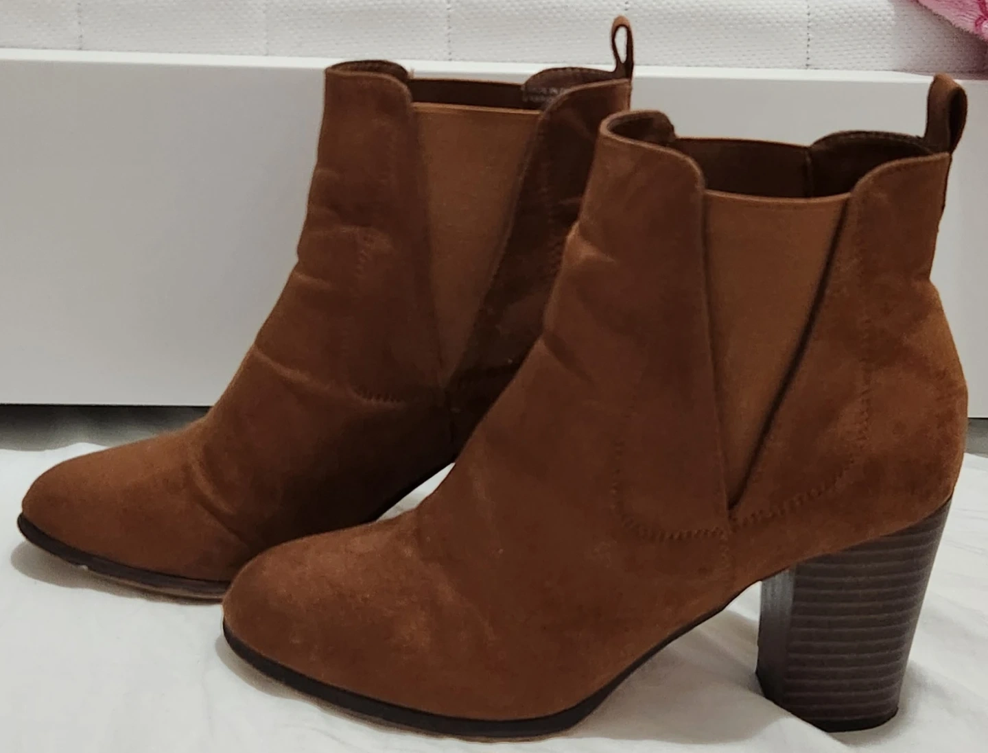 Fashion Boots with elastic side panels. They have a stacked block heel and a pointed toe. Perfect for dressing up or down! Size US 8