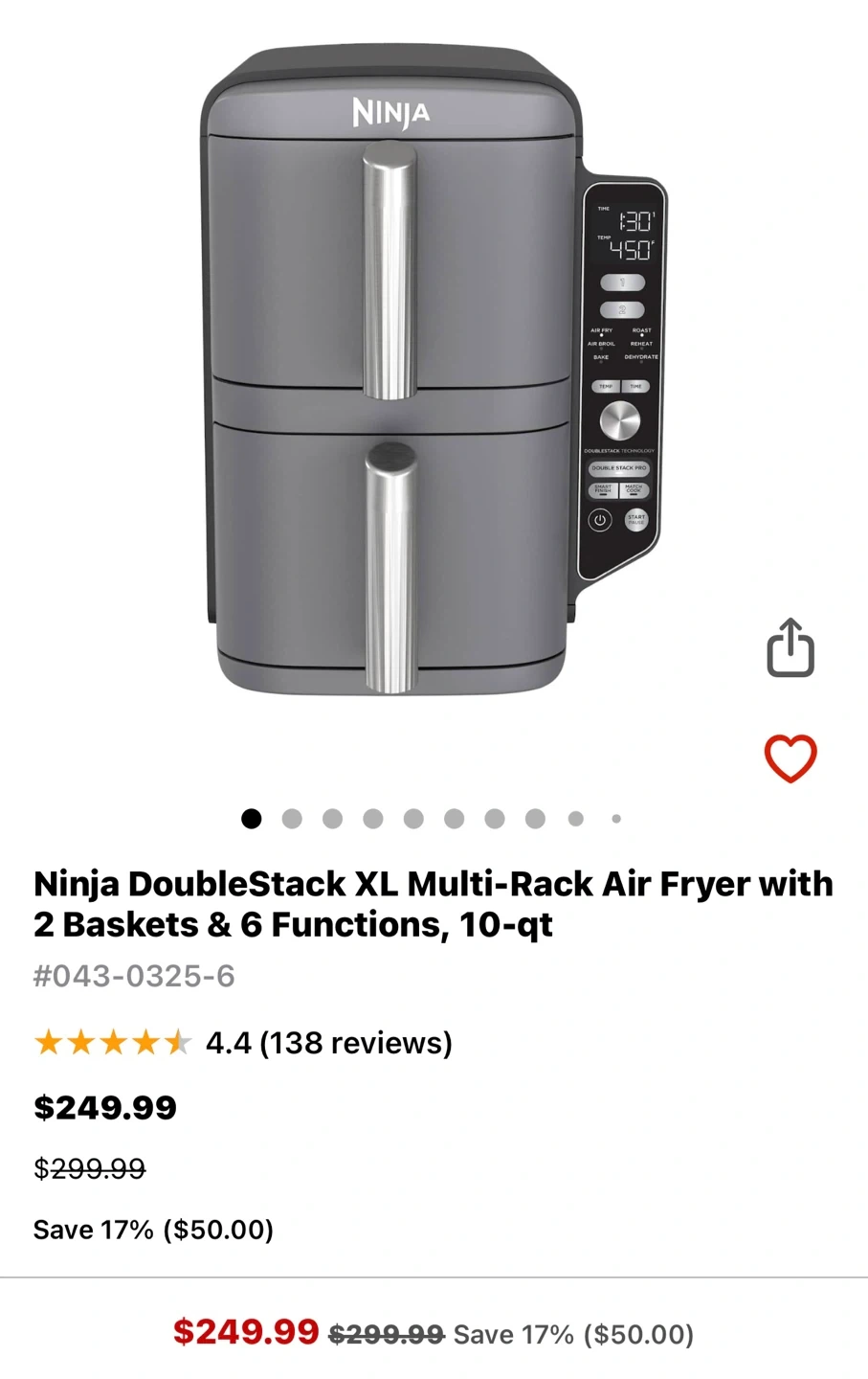 Ninja DoubleStack XL Air Fryer w 2 Baskets & 6 Functions