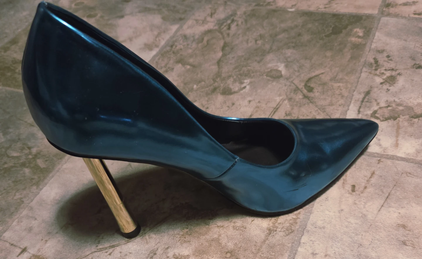 These teal Call It Spring heels feature a metallic gold stiletto heel and are made with sustainable vegan materials. B.E.D. Foam insoles provide comfort. Perfect for dressing up any outfit!