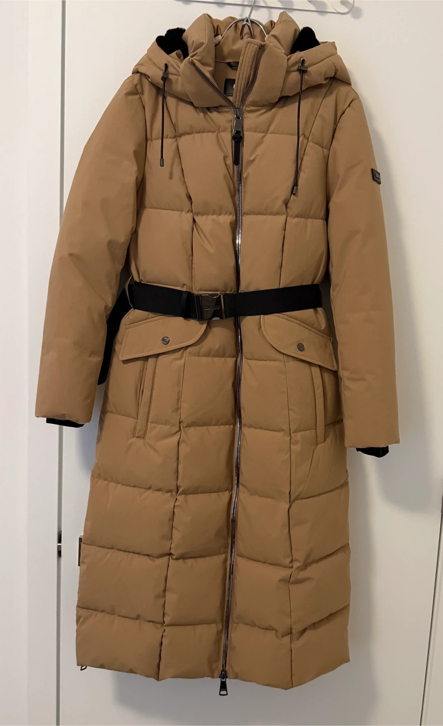 Cozy DKNY puffer coat in a lovely beige colour. It's a size medium and features a stylish belt detail. Perfect for staying warm during the colder months! Never used, it doesn’t have a tag on it. Got it as a gift