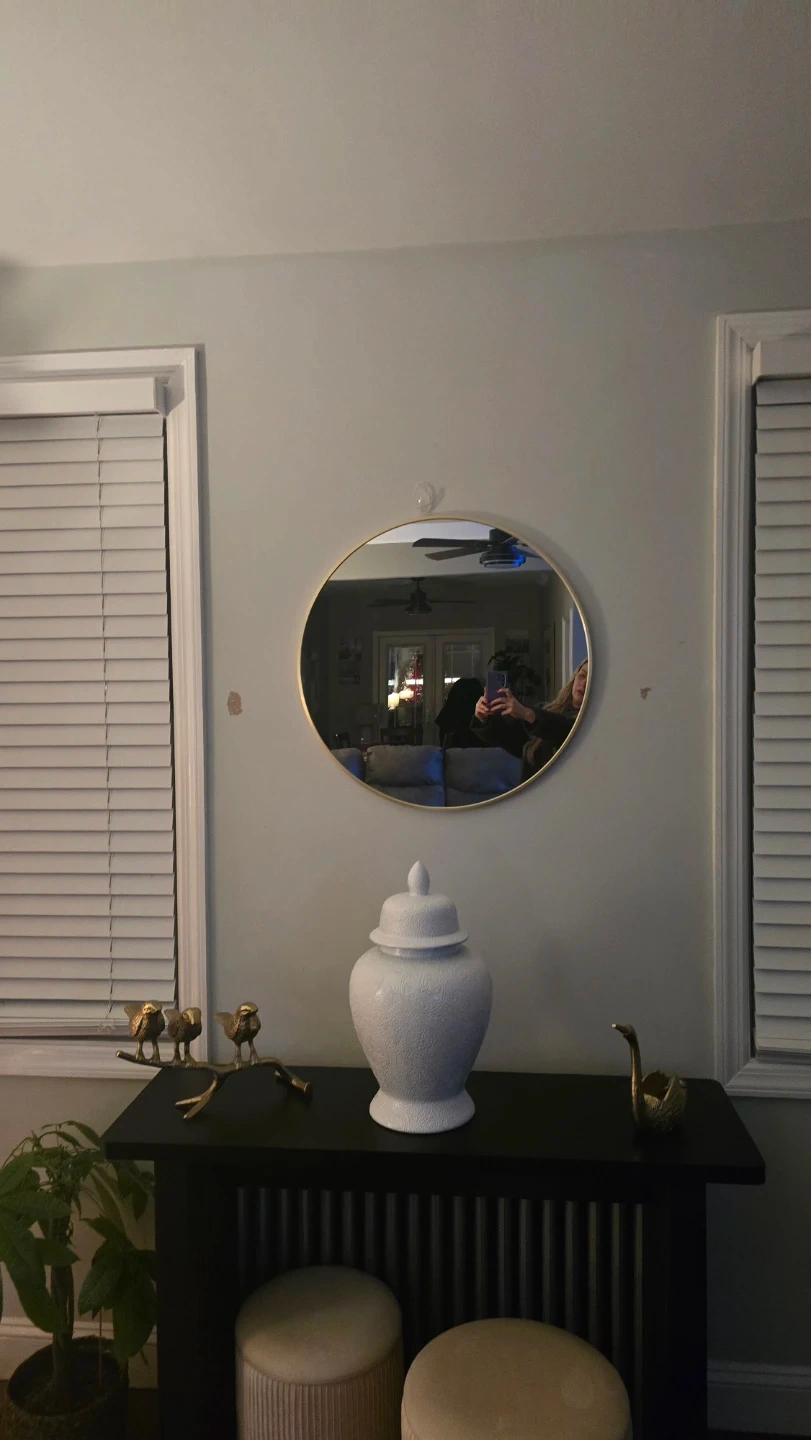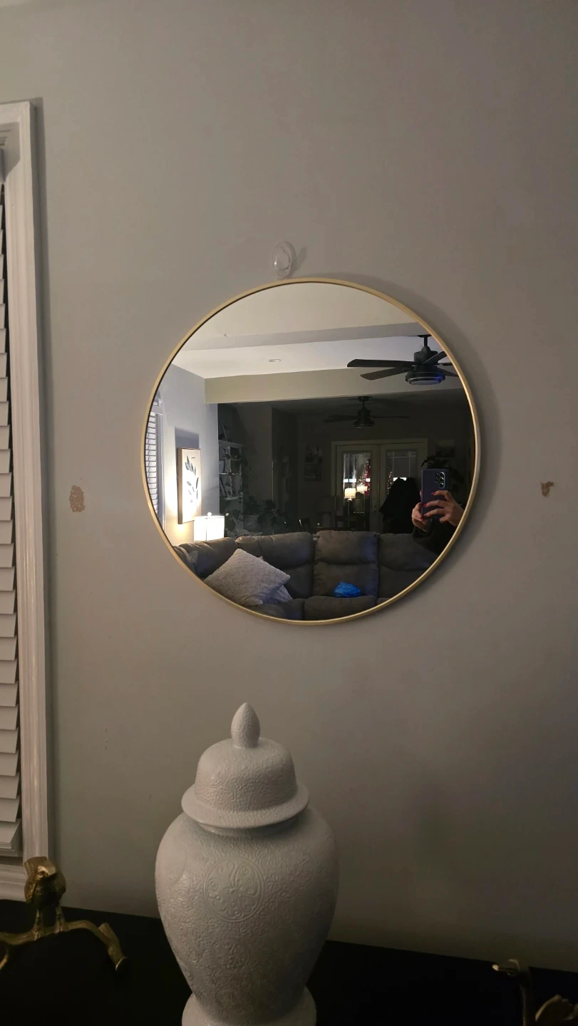 Selling a stylish round wall mirror with a gold frame! It's in great shape and ready to brighten up your space. The round shape adds a modern touch to any room