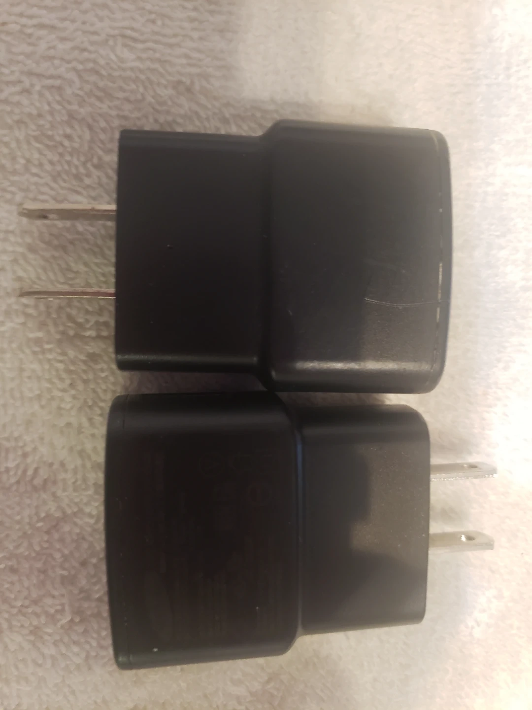 Selling a pair of Samsung black wall chargers. These are standard USB power adapters. They're perfect for keeping your devices topped up at home or the office.