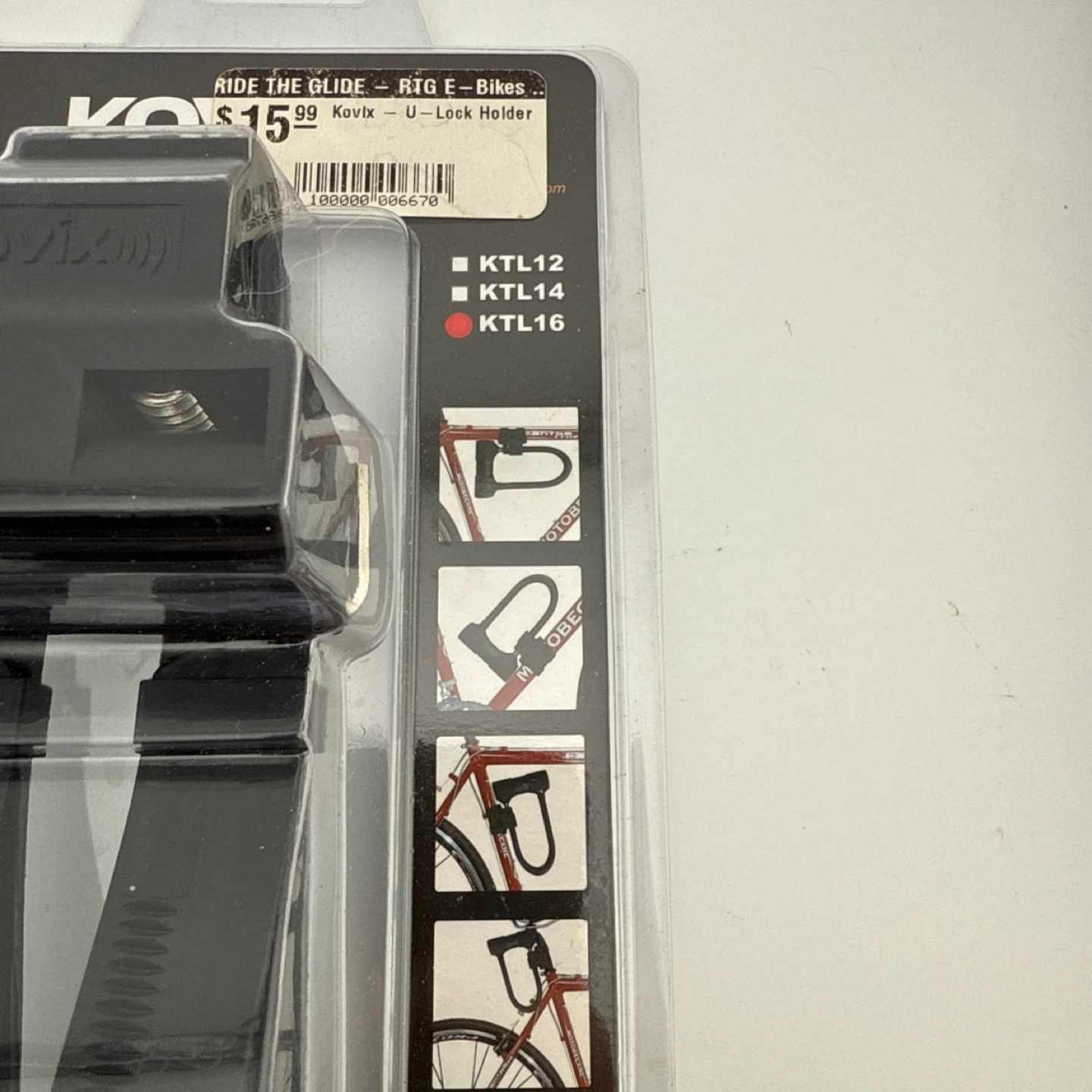 This is a KOVIX U-lock holder designed for E-bikes. It's black and made of durable plastic. The holder is perfect for securely carrying your U-lock on your bike.