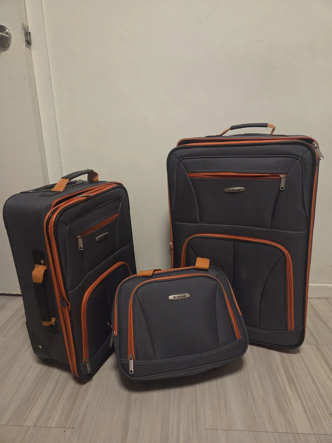 Skyway Luggage Set - 3 Piece - Gray with Orange Trim