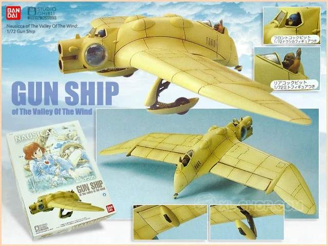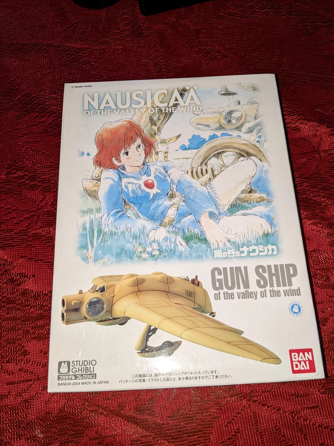 Plastic model kit (unbuilt and unpainted of course) of the Gun Ship from Studio Ghibli's Nausicaa of the Valley of the Wind.