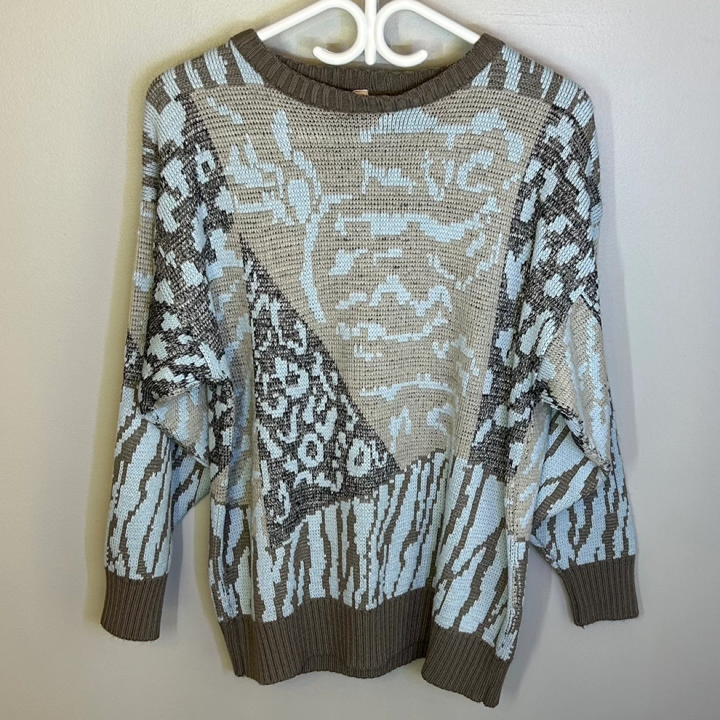 Vintage 80s Olsen Colorblock Animal Print Knit Sweater Sz M